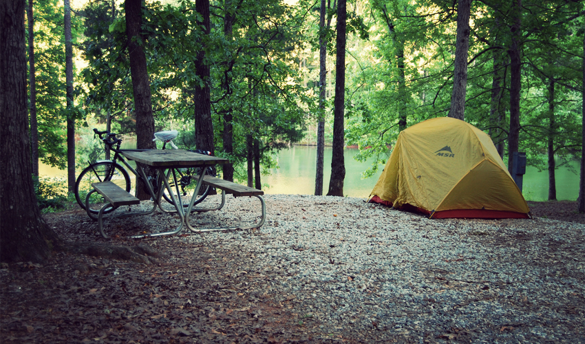 I set up camp in the early evening just above the shores of Lake Hartwell. The wind blows constantly and the air turns cool the minute the sun falls behind the hills. I bundle up and fall asleep expecting a cold night.