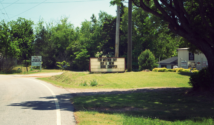It's cooler, even late in the morning, and I'm freezing by the time I finish the four-mile drop I slogged up yesterday afternoon. From there it's on through downtown Toccoa, past run-down car repair places, second-hand clothing stores, a pawn shop, and old signs for businesses that closed 20 years ago. The place is just big enough to support a Domino's pizza and a Buick dealership.