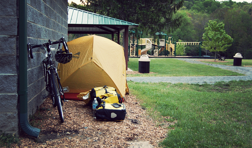 I ride off a side road, up one last hill, and pull into a wonderful little park in a community called Canada, which I came across completely by accident last night while screwing around with Google Maps. I set up the tent as a house across the way blasts "I Believe in Miracles" from a scratchy radio. I dive inside and stretch out, tired from all the climbing but impressed that I just finished one of the toughest riding days in my life.