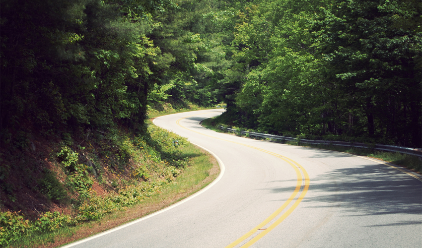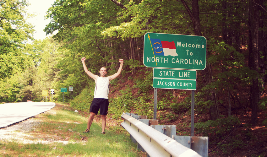 At the end of the huge climb I cross into North Carolina. A sign at the top warns of the eight miles of winding road ahead. I have it in my head that the logical place for a state line is at the top of a mountain pass, so I must have a big, winding, amazing downhill ahead.