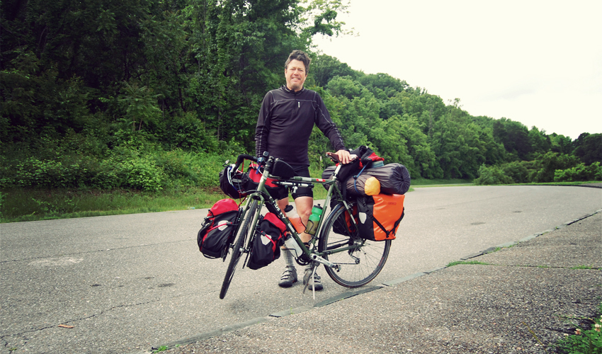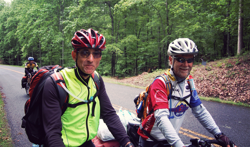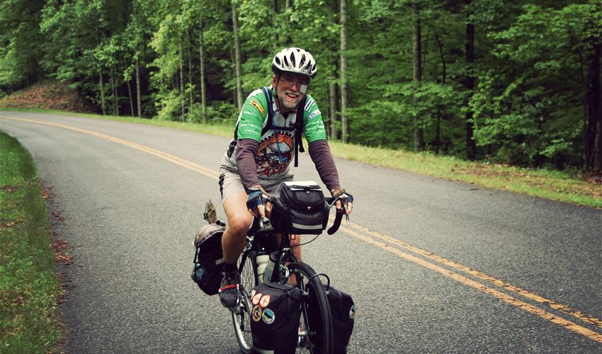 It feels strange riding up a big hill, looking ahead of me, and seeing another loaded bike slowly crawling the same direction. Within the hour I look back in my mirror and see another—and another, and another, and finally one more. Paul organized the ride and also lives in Virginia Beach. Dean's from Bar Harbor in Maine and John from Boone in North Carolina. Tom comes from a town in Tennessee called Soddy Daisy, the most Southern-sounding place in America.