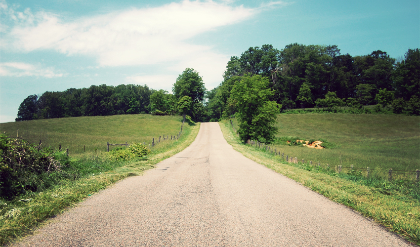 I see a county line sign up ahead and pump my fist, because I know that around here they mark the end of long climbs. The drop down the other side is unreal—it's sick, it's filthy, it's disgusting. It's absolutely incredible. It's a rough, lane-and-a-half-wide track with a steep, barrier-free chasm down to my left. The switchbacks seem even tighter and steeper than what I just rode up, but I scream through them anyway, leaning through the corners as much as I can without scraping the bottom of the front panniers on the pavement. The descent flings me out into a valley, where I moo loudly at the cows standing alone the fence line and send them running in fear. I'm drunk on bike riding again.