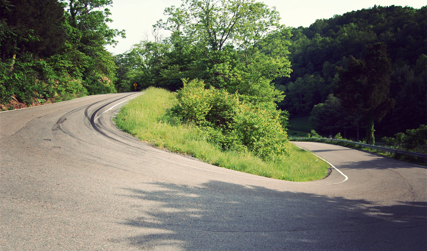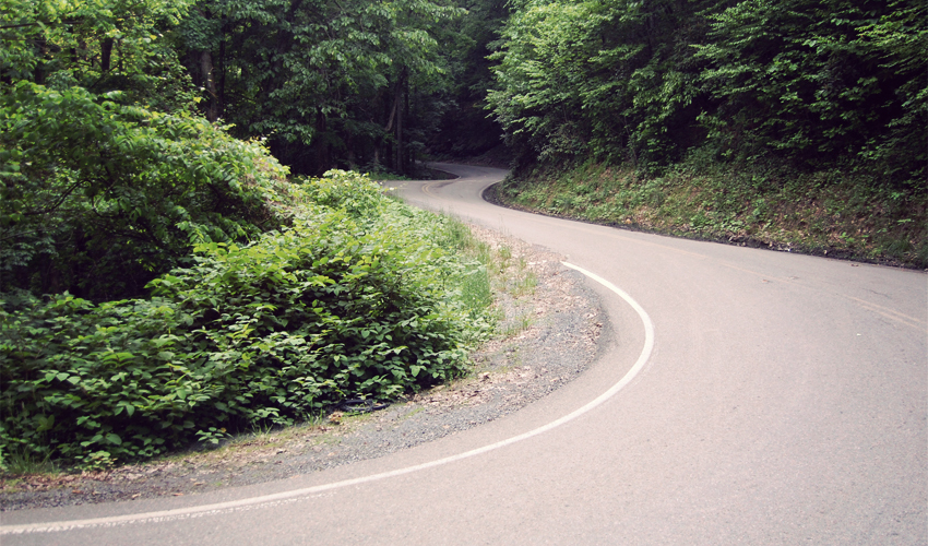 By the time I pull myself away from the cool of the library, the sun hangs behind a thin layer of clouds, the road runs mostly through shade, and a light breeze blows. It's perfect. The highway heads steeply up, curving and winding in a string of switchbacks that seem like they'll never end, always at an eight or nine percent grade, and sometimes steeper at the apex of the turns. It's not fun—I sweat by the gallon, my quads burn, I spit and grunt and swear—but it's manageable. Then I realize that after six weeks on the road, the last three of them spent bobbing over one hill after the next, it sure as hell should feel that way. The center line runs faded through the middle of each corner and rocks line the edges because the cars and trucks that use the road don't worry much about things like lanes or oncoming traffic. I grind, I grind, and then I grind some more.