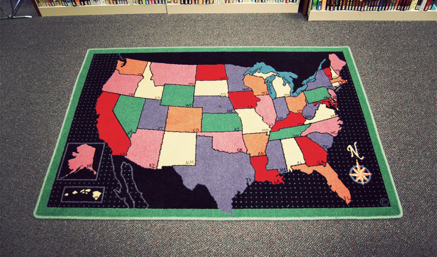 A map printed on a mat sits on the library floor in front of me. I look at the colorful states, and for the first time in more than a month I realize that I still have an incredibly long way to go before I reach the Pacific Ocean. Then I think about how it's probably going to be hot or at least mildly uncomfortable almost every mile of the way. I close my eyes, let the breeze from the air conditioner wash over me, try to process all of the riding still to come, and listen to the librarian sort out a tense situation involving an eight-year-old boy and the book "Cloudy with a Chance of Meatballs."