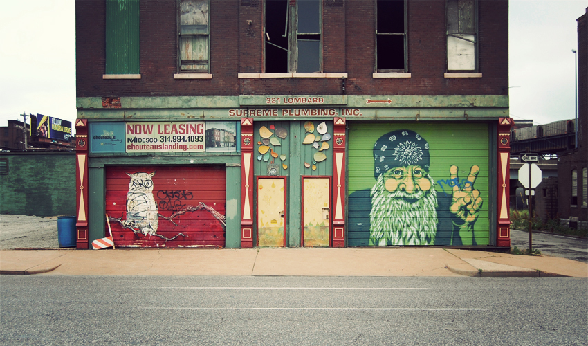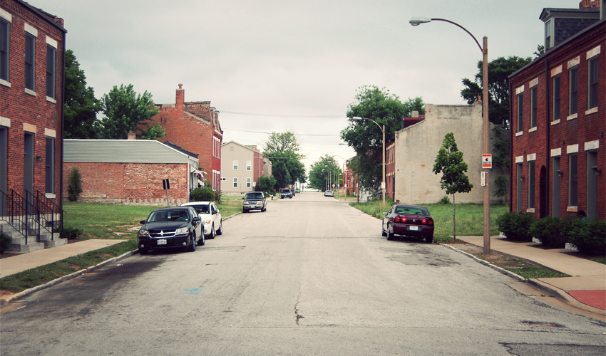 I write in a cafe south of downtown St. Louis for hours. When I leave in the early evening I head for a house owned by Tery, my Warm Showers host for the night. All I know about the place is that I have to ride north to get there. I backtrack through downtown, among tall buildings with names like Deloitte and Edward Jones plastered on the side. I pass a Hyatt, a Hilton, and even a Four Seasons. I see the stadiums where the Cardinals and the Rams play. It's familiar, even though I've never been here. I could just as easily be passing through Minneapolis, Austin, or Phoenix.