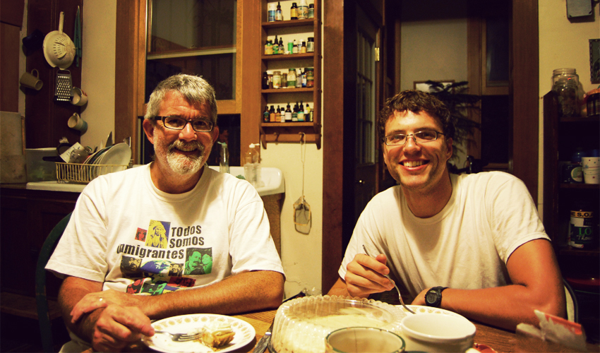 Tery and Danny are both part of the Catholic Worker movement in St. Louis, a group they refer to several times as an intentional community. They provide transitional housing and support for roughly a dozen people in a three-story building across the street. They manage to keep the lights on and the dinner table full without any funding from the Church or the governments at the city, county, state, or federal levels. Both men work as teachers during the school year, where they spend all day in the classroom before coming home to serve meals, take part in meetings, clean up, and keep the old home functioning.