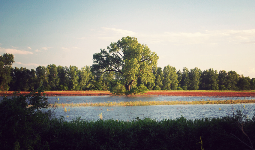 Blocks of closely spaced houses give way to homes set on a few acres, and then eventually to rolling countryside. The rural highway drops me down into Huntsdale, where a mosquito flies straight into my right nostril. It can only mean one thing: the Katy Trail is close by. Even though I swore it off a week ago, it turns out there's no other practical way for a bike to reach the other side of the Missouri River from Columbia, so our relationship continues begrudgingly for one more day. Immediately I'm back to the familiar flatness, the noisy cicadas, the fine white dust, and the ripples of current on the surface of the muddy brown river. Within two miles I'm completely lost in thought and entirely oblivious to the world around me.