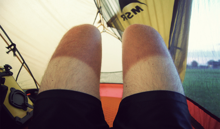 A golf course sits on one side of the park and baseball diamonds on the other. Businesses across the street sell Ford trucks and pieces of farm equipment that take up more space than my apartment. Chanute cools only slightly as the sun sets and a light breeze blows from the south. Everyone who's camping heads to bed by 9:30, with the sky still holding on to its last bits of light. I lay on top of my sleeping bag, motionless but sweating, listening to the booming bass from passing cars and thinking about the hot Kansas day that lays in wait.