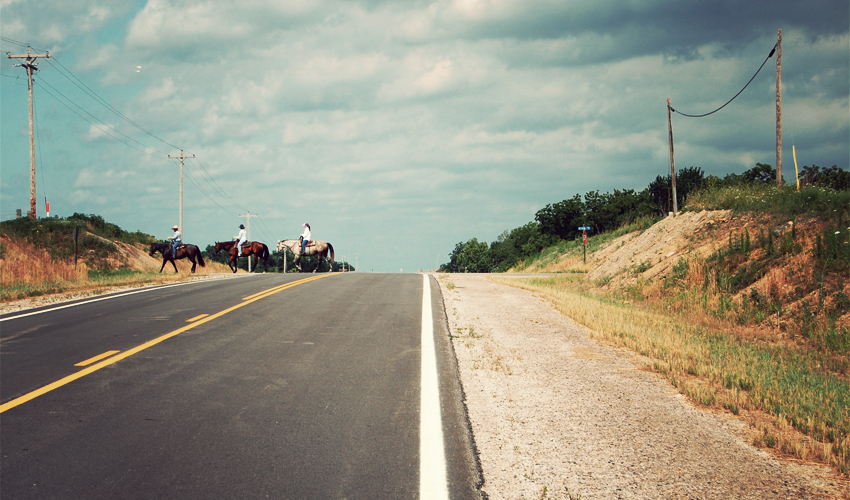 I always associated Kansas with the color yellow and huge fields of grain stretching out to the horizon as far as the eye can see. But it turns out that the eastern part of the state is mostly green. It's full of corn fields, grazing land for cattle, and a surprising number of trees, most of which run in lines around the edges of properties and along the banks of rivers and streams. This morning the wind blows only subtly from the south, neither helping nor hurting my push to the west. Grayish-blue clouds drop rain in all three directions behind me, but the sky above the long, straight road in front glows a pale and nearly cloudless blue.