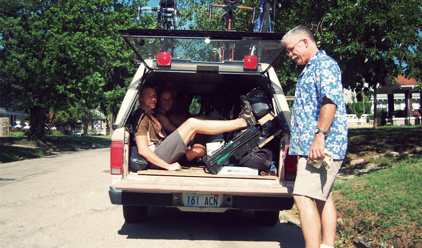 Within the hour the three of us walk in through the back door of her house and into a cool oasis that makes me forget I'm riding a bike across Kansas in the summer. There we meet Jacques, Chauncey, and Brian, three college-aged kids from Western Virginia. They've been in town since yesterday, when a drive-side spoke on Jacques' rear wheel broke and left the group stranded. But in a gesture so helpful it could only happen in rural America, a bike mechanic from Newton—located 75 miles to the west—is on his way to Eureka to pick up the three riders and all of their gear, take them back to his shop, fix the busted wheel, and make sure they can continue their ride to Oregon.