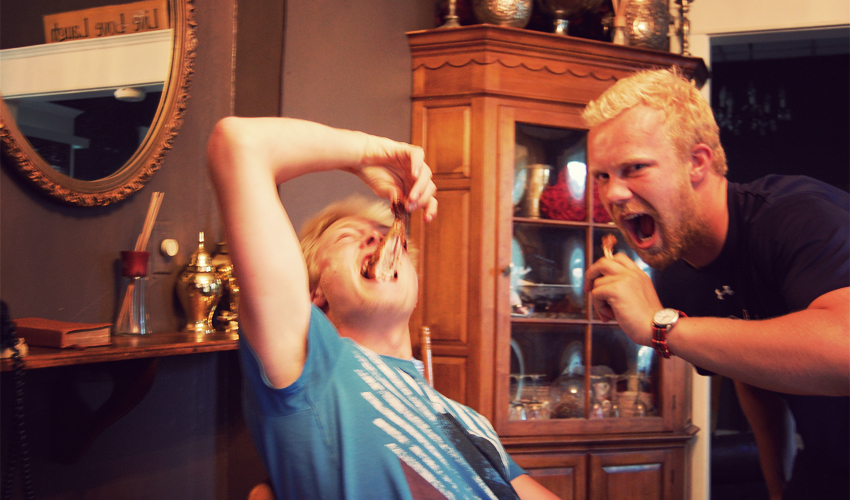 Just before 11:30 the house gets fuller still. That's when Noah, Phil, and Tim ride into town after pulling the 75-mile run from Newton, which they started in hundred-degree heat and finished in complete darkness. The three are brothers between the ages of 17 and 22. They're riding from Oregon to North Carolina before taking a train to Iowa and riding back to Oregon along the northern edge of the country. To do all of that before October they need to average around 90 miles a day, a goal that's complicated by the fact that their devout religious beliefs don't let them ride on Saturdays, and compel them to spend every Sunday morning in church. They've chosen a demanding path, but with Jesus on their side and the most positive attitudes I've ever seen, they are bending America to their will.