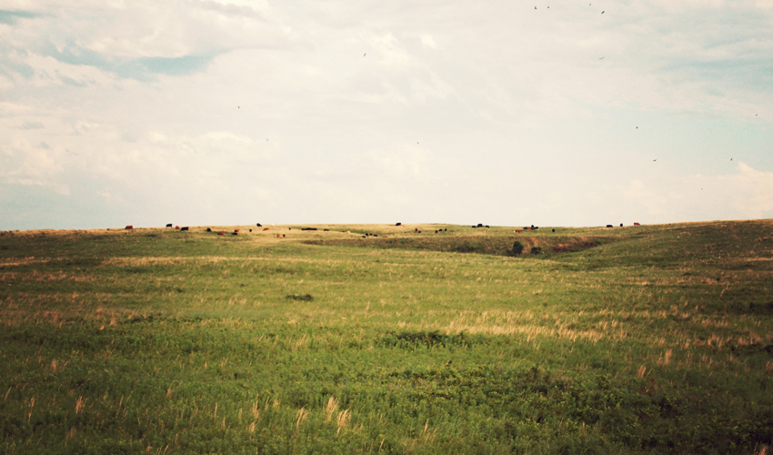 After leaving Chanute under the cover of darkness, the next 15 miles run absolutely straight to the west, where it's only me, four cars, a dozen deer, and a few hundred head of cattle who stare when I ride past, blades of grass hanging from mouths frozen in mid-chew. Farther on the road curves a few times. To figure out which way the wind is blowing I spit out in front of me and watch which direction the the big white blob travels. Between the early start, the tailwind, and the overcast sky that keeps the sun at bay, I feel like I'm beating Kansas at it's own hot and windy game. I can enjoy the riding and countryside spread out before me instead of grinding out miles and longing for Colorado.