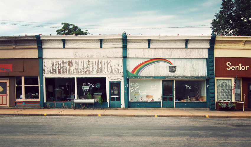In true Midwest fashion, I walk out of the cafe under blue skies and bright sunshine, the violent thunderstorm only a memory. I ride west and see signs for tiny towns with old man names like Quincy and Virgil. The land all around works to support cattle ranching. Mile after mile of grass shines bright green, broken up only occasionally by holding pens, loading docks, and gates, all of which are made of rusted brown metal.