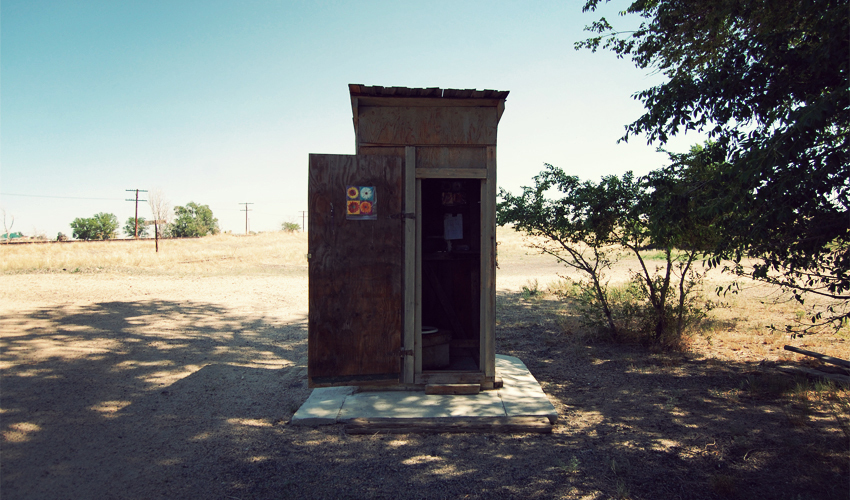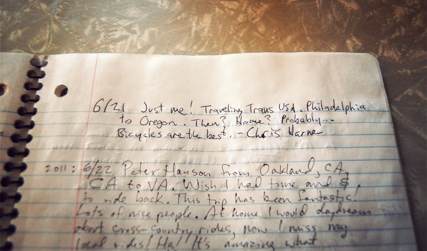 Back out in the prairie I ride in the company of barbed wire fencing, telephone poles, one pair of railroad tracks, and a long, rough stretch of chip-sealed highway. When I reach the town of Arlington I count seven houses still being lived in. Off to the side of the road, at what used to be the center of the town, in the shade of a group of trees and near a couple of red metal picnic benches, I come across a little slice of bike touring goodness: a wooden shack with a pit toilet, a battery-operated light that turns on with the pull of a cord, a few maps, and a guest book. There aren't many greater things in life than taking a dump in the middle of the vast, open plains of Eastern Colorado while flipping through at least five years worth of clever entries made by the TransAm travelers that came before me.
