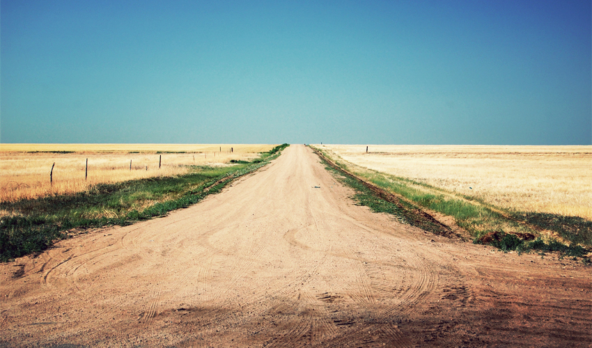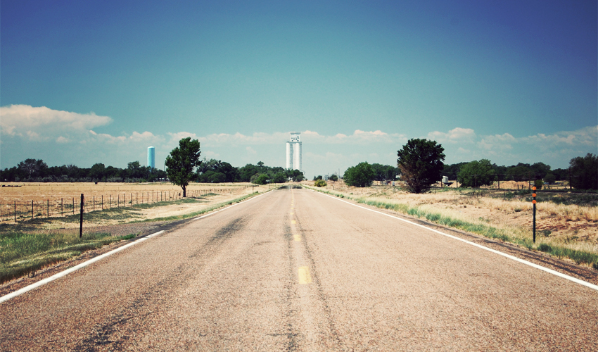 The road in front of me looks flat, but it actually rises very subtly and steadily. Greenish-yellow grass runs on both sides of the road, and then beyond it as far as the eye can see stretch thousands and thousands of acres of wheat and absolutely nothing else. Further west, groups of a dozen trees rise periodically from the sea of gold, marking the location of small homes. The surface of the highway is covered with three-inch-wide black lines that snake in all directions and patch the cracks in the road that come from the blazing hot summers and terribly cold winters. Every 50 feet I pass over one of the patches and it shakes the bike and quietly rattles the panniers and fenders. The world around me turns still and peaceful when I stop—I hear only the sounds of crickets, a few birds, and a single propeller plane off to the southwest.