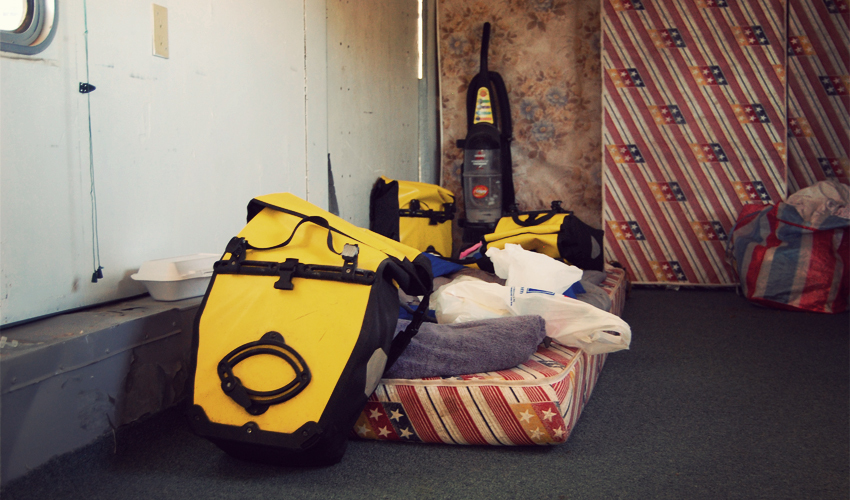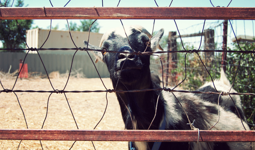 I wake up to the sound of goats crying out in the pen that sits next to the trailer. There are three of them—two solid brown, one white with black patches. Their favorite activity is to stick their head through the fence to get at the hay and plants on the other side, and then yank backward, get their horns stuck in the thin wire slats, and struggle for 15 seconds to pull everything back out. It seems like every time they see me they stop, look around for a few seconds, and then start to take a leak or a dump. I can't decide if I should feel offended or honored.