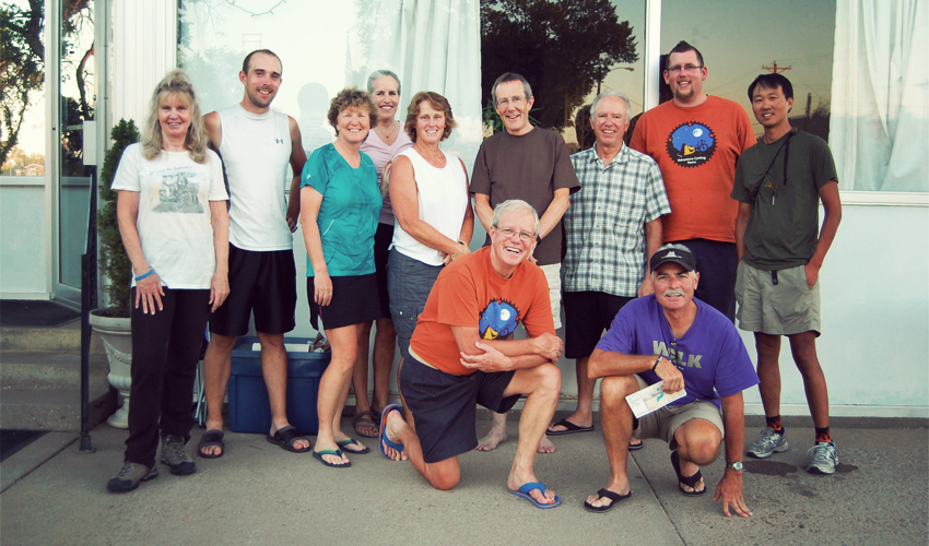 Not ten minutes after I celebrate my solo holiday, three bikers walk into the restaurant. Martha, Caroline, and George are eastbound, riding from Wyoming to Missouri, and they plan to spend the night at Gillian's. Not long after I meet Leo and Sandy, who are now riding on their own after starting with Kenny and Wayne, the two guys from Pennsylvania I met all the way back in Booneville, Kentucky. Fifteen minutes later, on my way back through town, I run into half a dozen people from the Adventure Cycling group, who are out in their van picking up food for a barbecue they're having later in the evening. When they invite me to join them, my lonely Fourth falls apart completely.