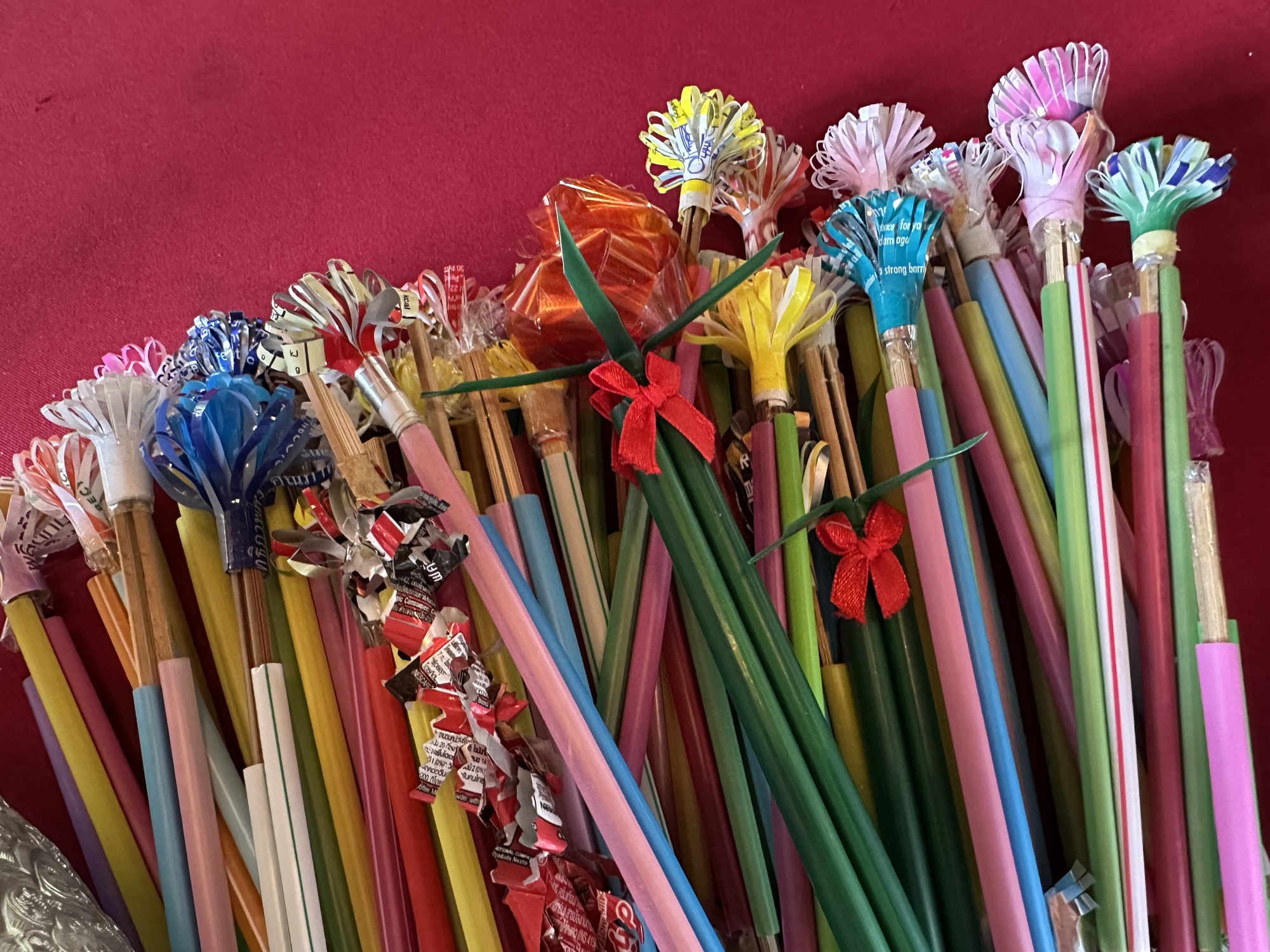 Bruce LellmanTo John SolemThank you, John. I guess I could have done a Google search too but there is so much that is always going on for us that I can't do everything so it was nice of you to help out. Now, a day has past and I saw more of these in a temple with paper money attached to the straw like things. I'll post it soon. It's all making a lot more sense now.