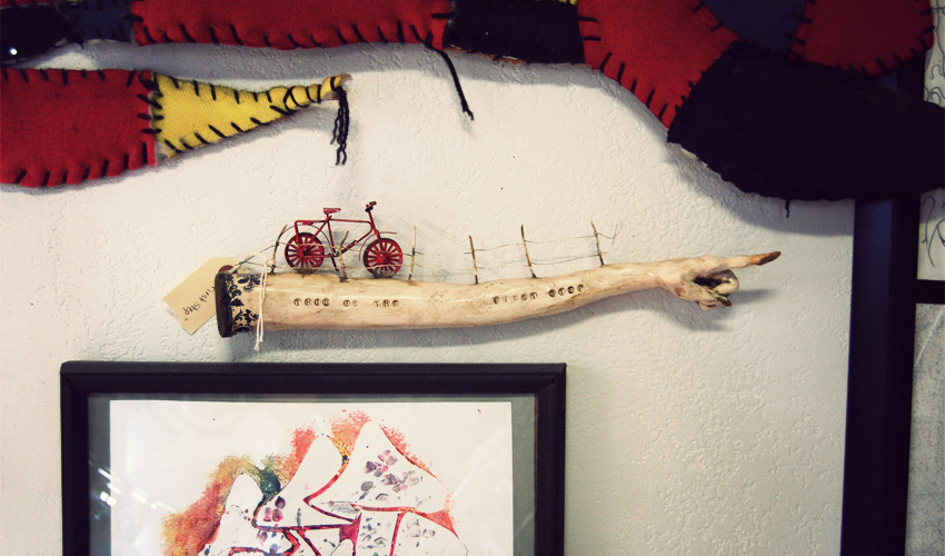When I head inside I find a great little shop, with walls covered in local art and antique bikes hanging from the ceiling. Spencer takes care of the busted derailleur cable quickly once he gets to it. He's a cool guy, both a mechanic and an artist, who's been in Canon City for more than a decade. He tells me that the road I came in on is the worst around, and that the town is a really great place to live. He also gives me a recommendation for a great Italian restaurant nearby.