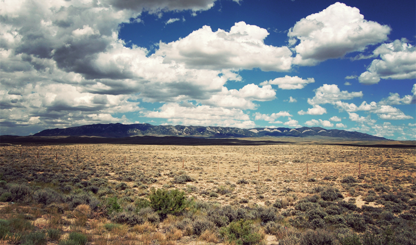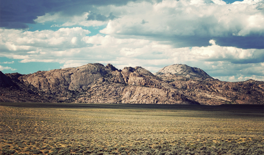 A hundred puffy white patches of cloud appear in front of me and a strong wind gives me a push from the left-rear as I climb gently but steadily out of Rawlins and cross the Continental Divide for the third time. Wyoming continues to amaze me with its ability to fill so much space with absolutely nothing at all, such as the range land that I pass where each cow has at least a hundred acres of land all to itself. Farther on I crest a rise and see the Great Basin spread out before me. It's an enormous swath of land that runs completely flat from one end to the other, backed on its edges by rocky ridges with peaks that angle gently up toward the sky. For several minutes all I can do is stand and stare with my mouth hanging open a little and my head nodding, completely in awe of the raw but beautiful landscape I'm about to dive into.