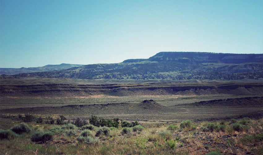 I pass the last house at the edge of Jeffrey City and return to prairie lands clear of people and roads and ranches, with rolling green and brown hills backed by snow-covered mountains way to the west. Not far out of town I ride by a group of 25 horses that stand a couple hundred feet from the highway. When I look back over my right shoulder a few moments later I see every one of them dashing toward me, galloping hard and kicking up dust and broadcasting the sound of a hundred pounding hooves. It's Wyoming's way of saying good morning.