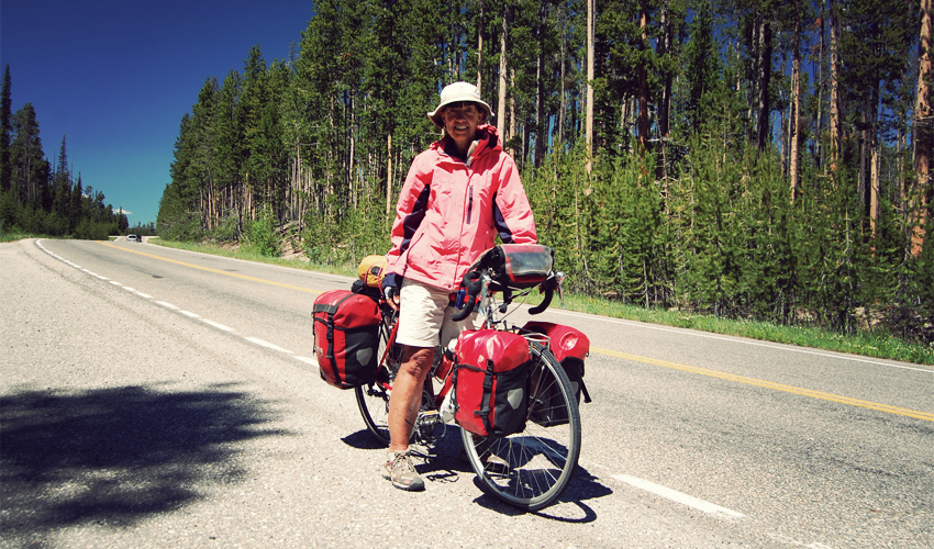 Rolling along one of the only flat sections of the morning I spot a loaded touring bike headed my way. I stop and introduce myself to Mickey, an older woman from the Netherlands who started in Seattle and is riding on to Pueblo before making a sharp turn and continuing to San Francisco. She's quiet, unassuming, and speaks with a thick Dutch accent—and turns out to be the most accomplished touring bike rider I've ever met.