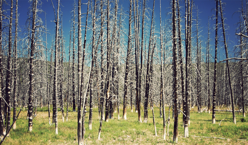 The highway splits just past Grant Village, with one road heading to the northeast and my route running to the northwest. It helps divide the traffic and soon I pick up a tiny shoulder where there wasn't one before—but half of a shitload of cars and motorhomes passing close is still a lot to deal with. I tell myself that I'm not riding through the woods, but a suburb where all of the houses and schools and mini-malls have turned to trees. It helps put me in the right state of mind to deal with the madness that's always rushing by.