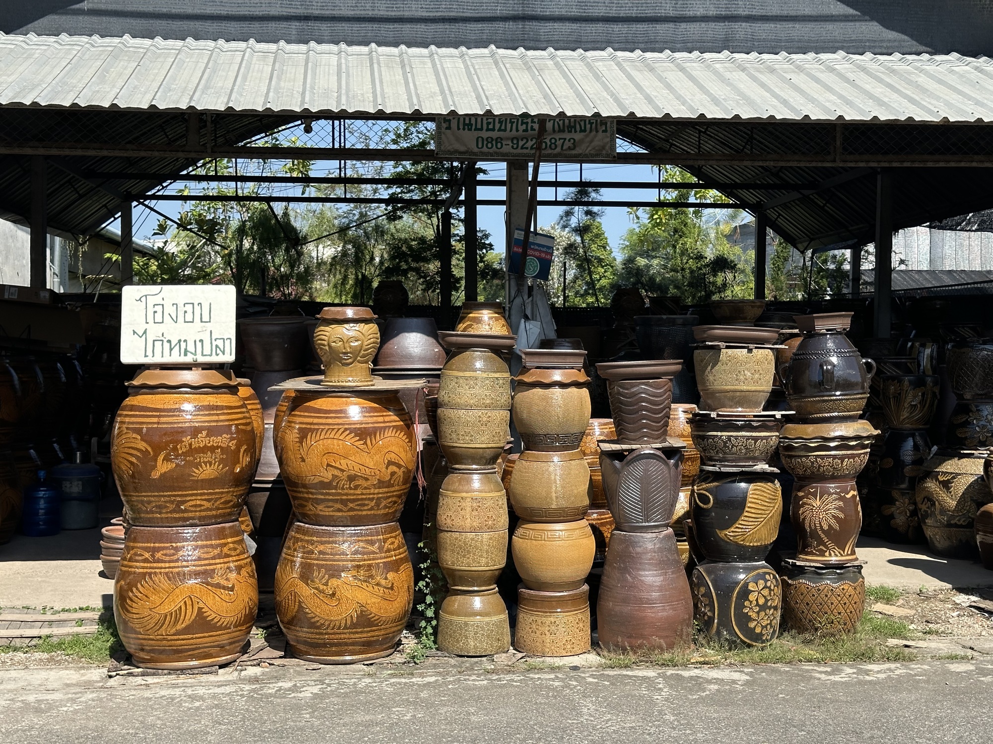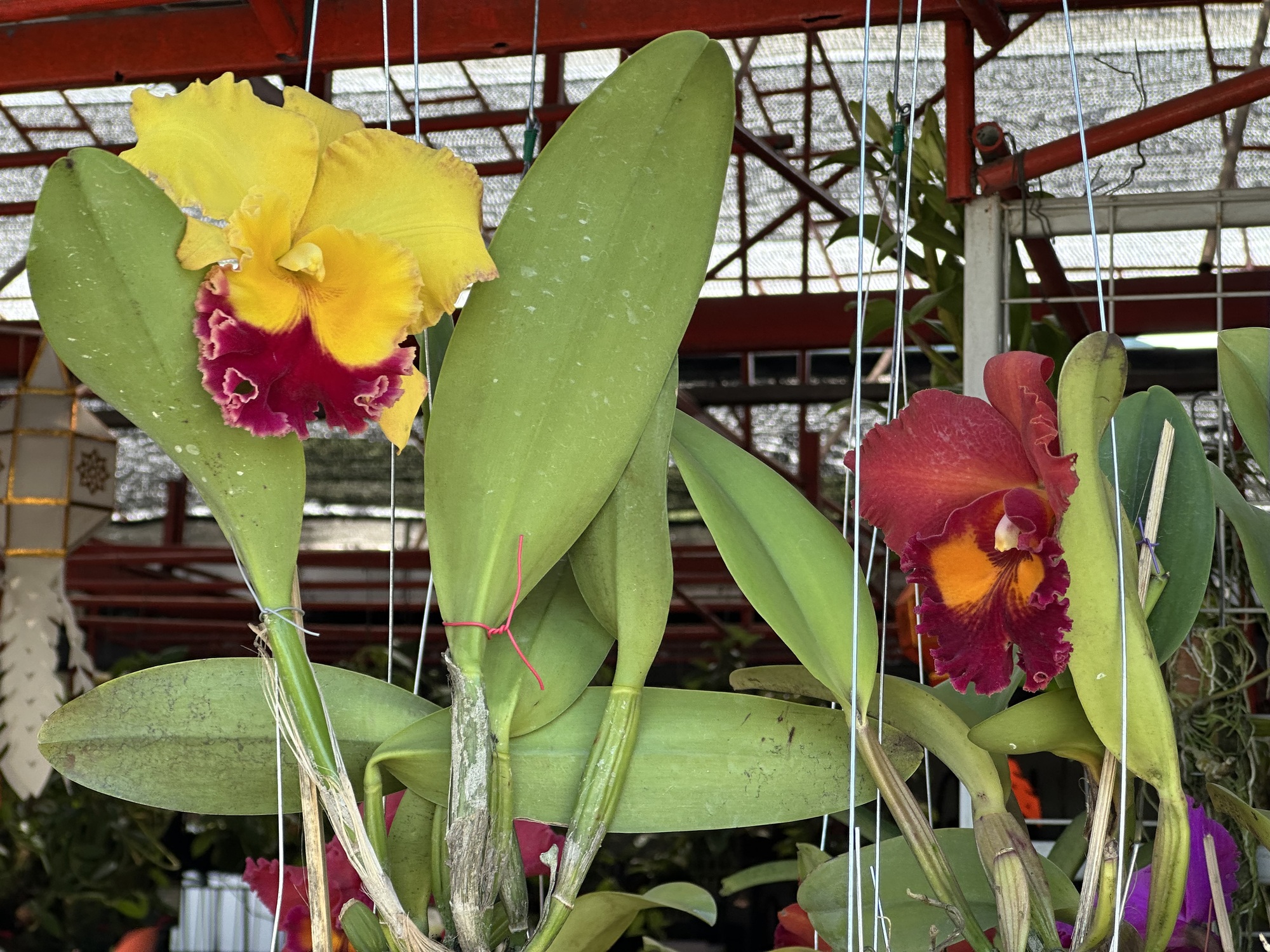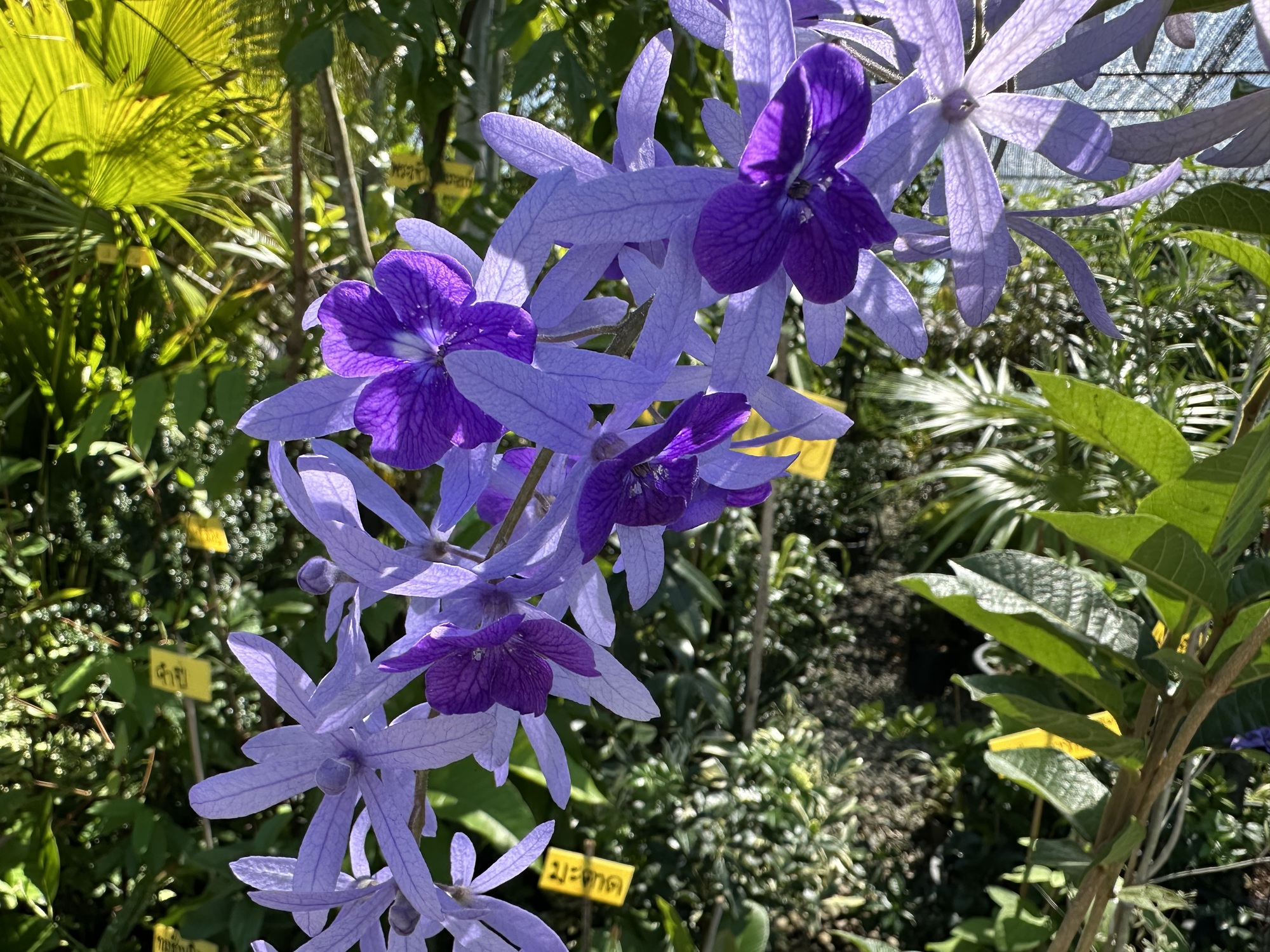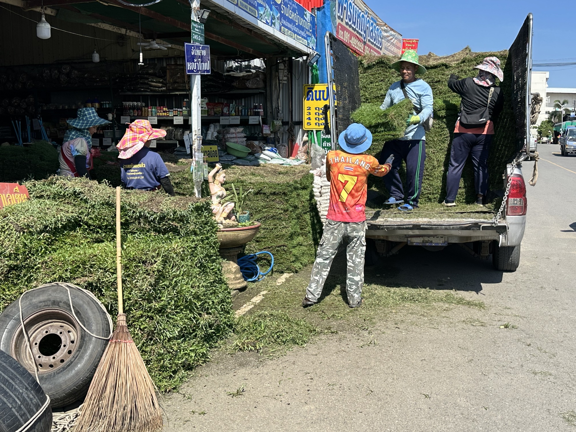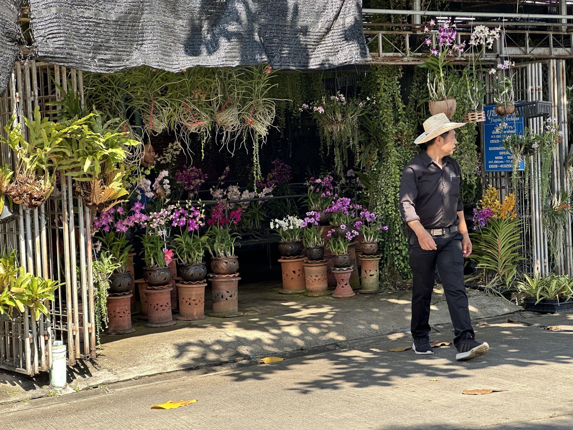 After the market we were in some reasonably sane streets and closing in on Lotus’s. But first, a street of huge puddles! Let’s go a different way. That detour led us into a perfect garden of delights. A literal garden, because there is an enormous market area up in those parts called Kham Thiang Garden Market. It looks to be a fairly recent development, with several widely spaced streets and various plant and garden supply vendors on each street. For people like us, it’s Garden Disneyland!