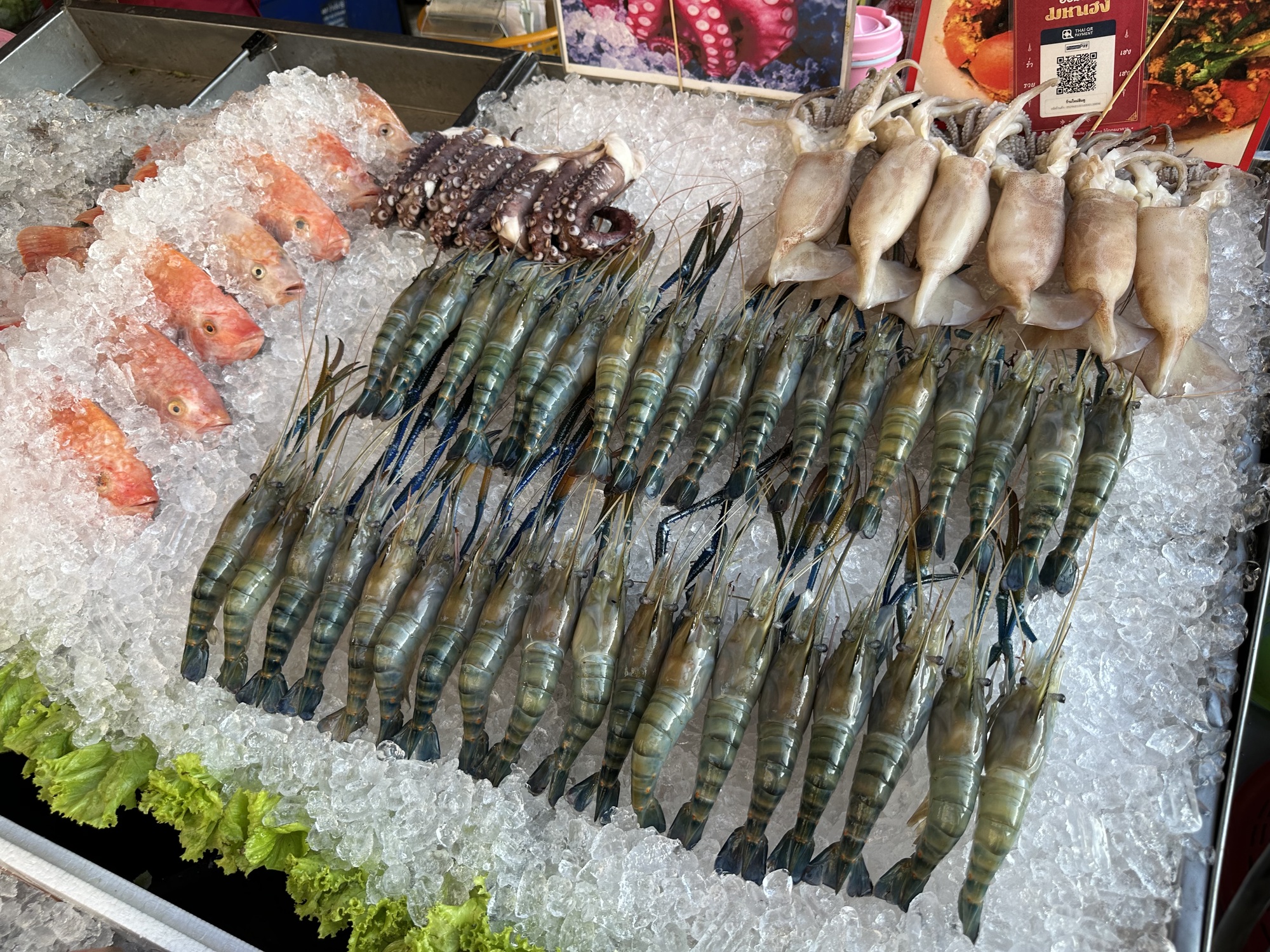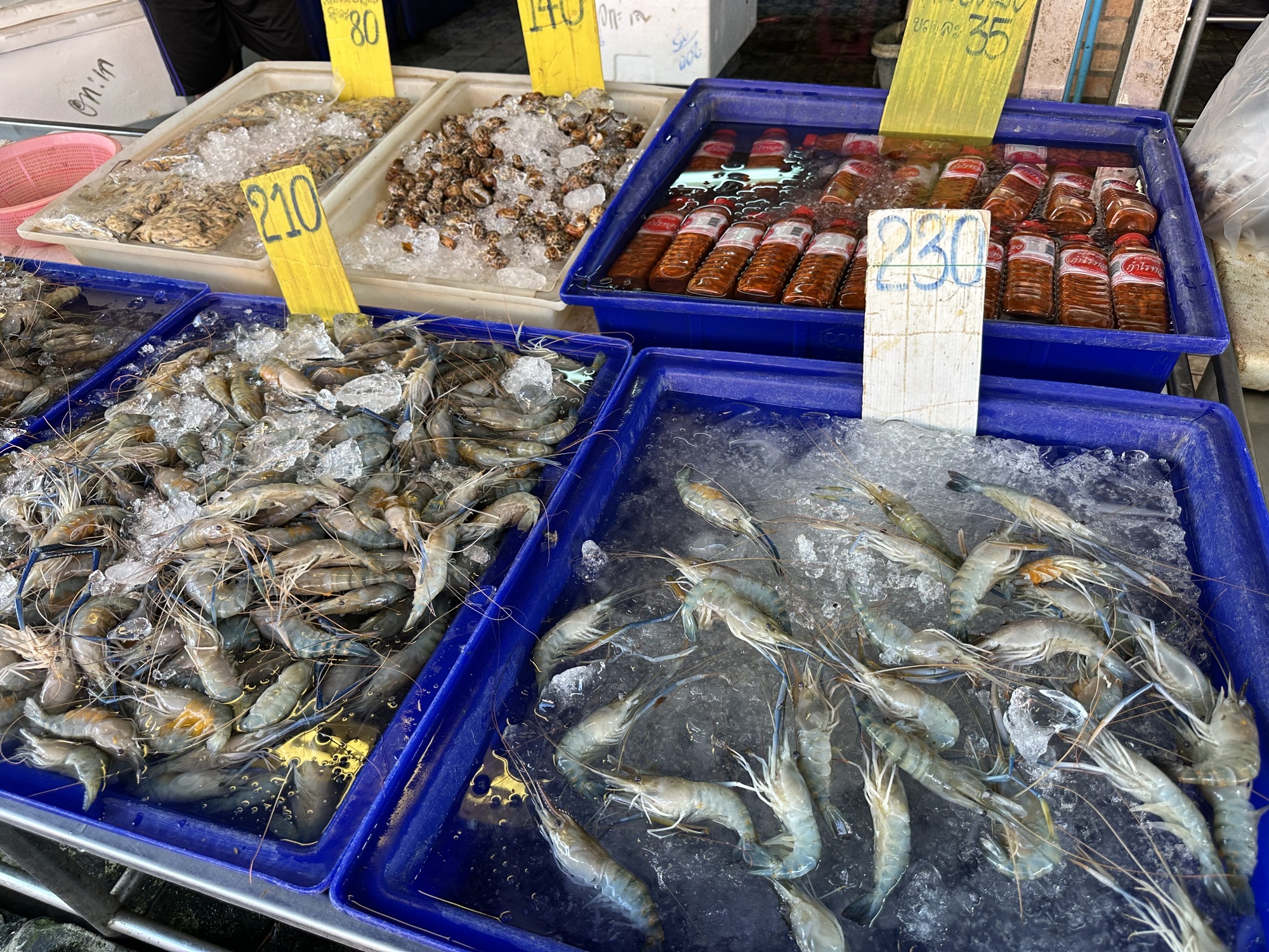 During our last FaceTime with our 3.5 year old grandson, he asked for pictures of “candles and shrimp”. Candles floating in the river, specifically, because we had described Loy Krathong to him. That candle has sailed although we did send footage of the little lights floating in the darkness, but he remains unsatisfied with those. But shrimp? Shrimp we can do. We had told him there were foot-long shrimp/prawns in the market and he was intrigued, hence his request. I’m not sure why the shrimp, I think he likes to eat shrimp. Wait till he finds out they have eyes and legs and antennae.