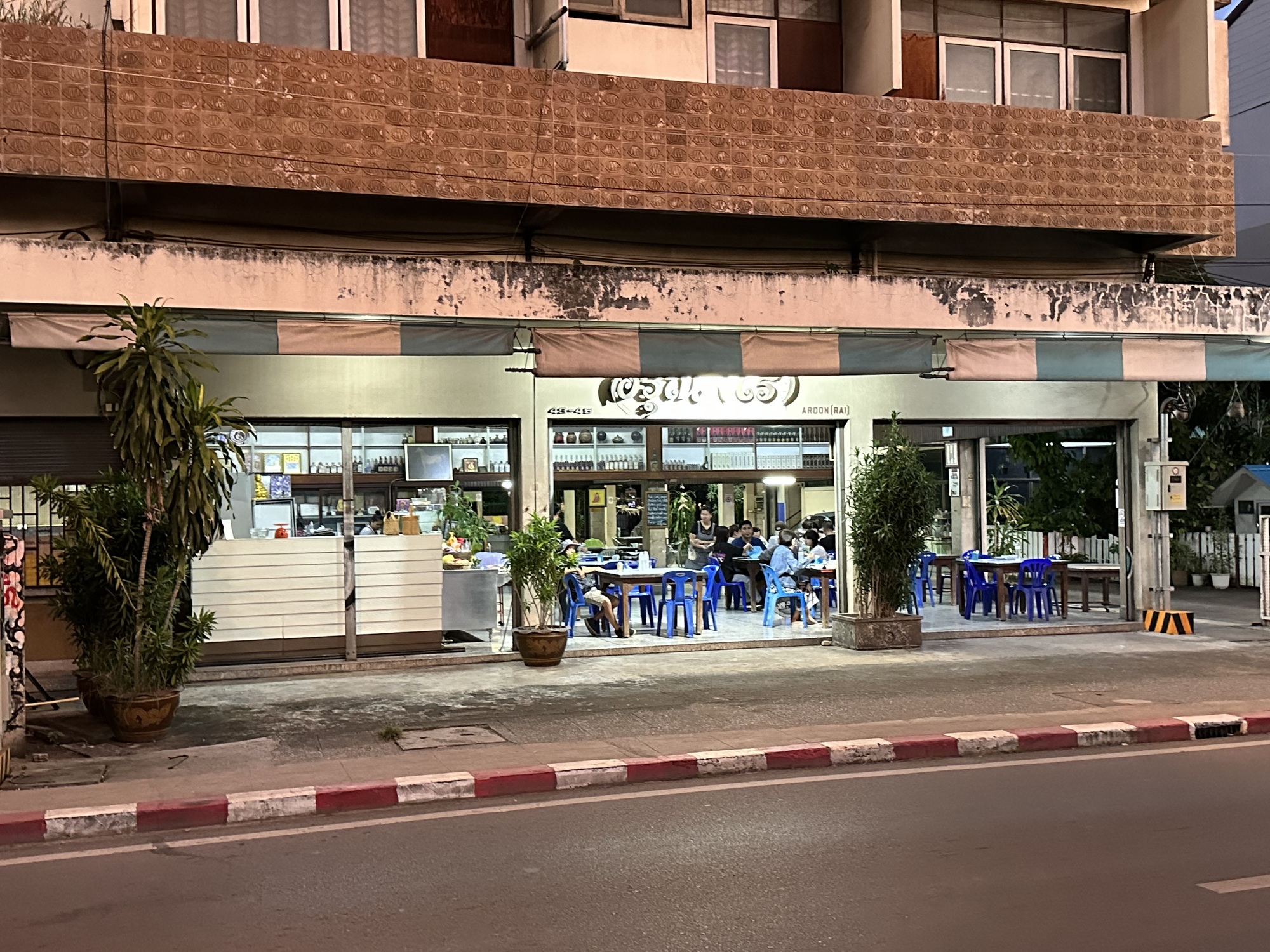 As we sat there at our ugly table the sun went down over the rooftops of Old Town and shoals of tuk-tuks and tourists and motorbikes roared along the moat steps away. More people, mostly Thais, drifted in and filled the rest of the ugly tables and set to. You really wonder how long a place like Aroon Rai can carry on with its listless decor and non-adorable staff. The fan flickered overhead and we sat back in our plastic chairs and silently cheered every single person who sat down with us. We are charged with paying attention to where we are and not what will happen next. It’s not up to us. But hoo boy. The Gaeng Hang Lay is a national treasure and you should go there.