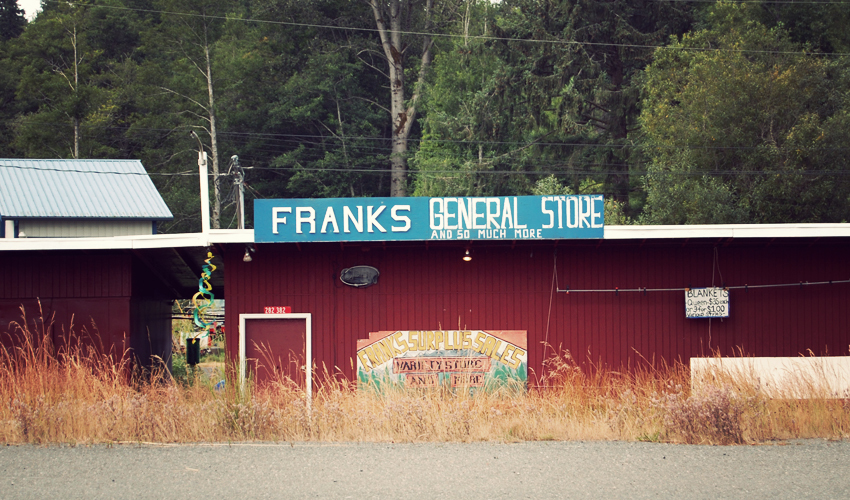 Eventually I pick up the hard-to-find Olympic Discovery Trail. It takes me into the woods, where I can hear the roar of the traffic but not see it, and only catch quick peeks out to the bays off to my right. Up and down and up and down I ride, and soon I end up in the oddly named town of Sequim. The place stretches for miles and miles and I pass what seems like every kind of business, from a tae-kwon-do studio to insurance agencies, office supply stores, a carpet shop, and Frank's Hobbies & Guns, where I could buy a pinewood derby car and a .357 Magnum in the same stop. The dark gray clouds off to the west threaten rain and look depressing, which matches how I feel. Even though I look forward to going home, knowing that the novelty and excitement and unpredictability of life on the road are coming to an end still bums me out.