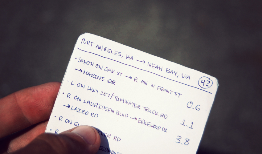 I spend several hours pedaling along the shoulder of U.S. Highway 101. It's the only major road going to and from the top of the Olympic Peninsula, so even on a Sunday morning it howls and growls with the noise of cars and trucks and the trains of giant RVs that tow full-sized cars behind them and back up traffic 20 or 30 cars deep in a line that stretches for a quarter of a mile. It's uninspiring riding—so much so that the most exciting part of the morning comes when I throw open the door to a public bathroom and hear the middle-aged guy inside yell out, "Aw! Hey man! Come on!" before I just as quickly slam it shut. It's a situation that's always horrifying for the poor fool on the shitter who forgot to lock the door and gets a mid-squeeze scare, but it's also completely hilarious for the person lucky enough to be the opener. I run through the scene in my head over and over for an hour and crack myself up every time.