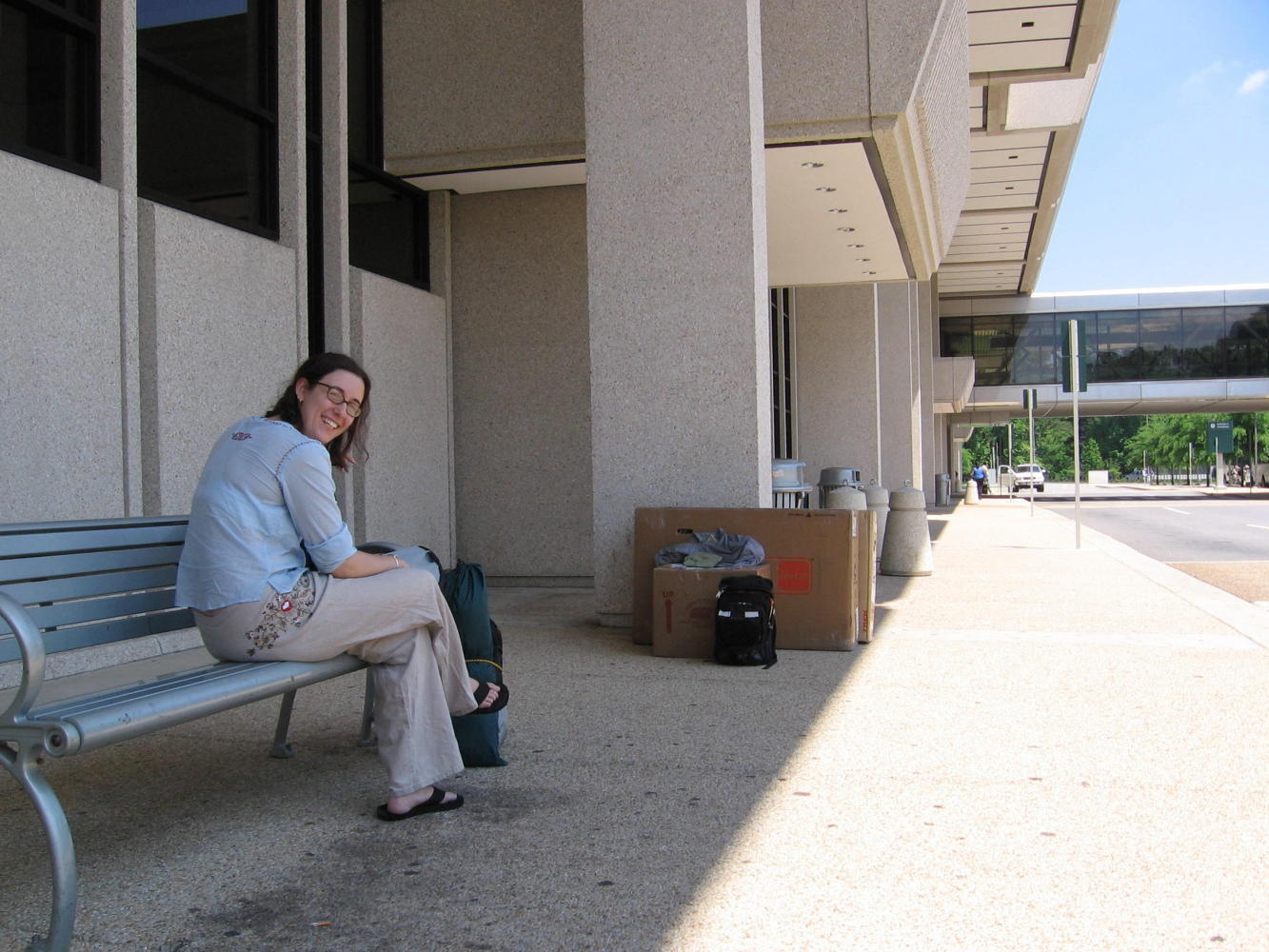 I woke up at 3:15, reluctant to leave my cozy bed but anxious to get to the airport and dispel fears of someone rear-ending me and squishing my bike or the airport somehow sending me home or something. Geoff, my airport ride angel, was ready to go when I got to his house just after 4:00--what a friend. Getting up in the wee pre-dawn hours to help get my journey started smoothly. At the airport, I awkwardly wrestled my boxes through a swirling mass of early-adolescent hormones en-route to D.C., unfortunately on my flight (40! 8th graders), but it was early, so some of them just sleepily attended their iPods.