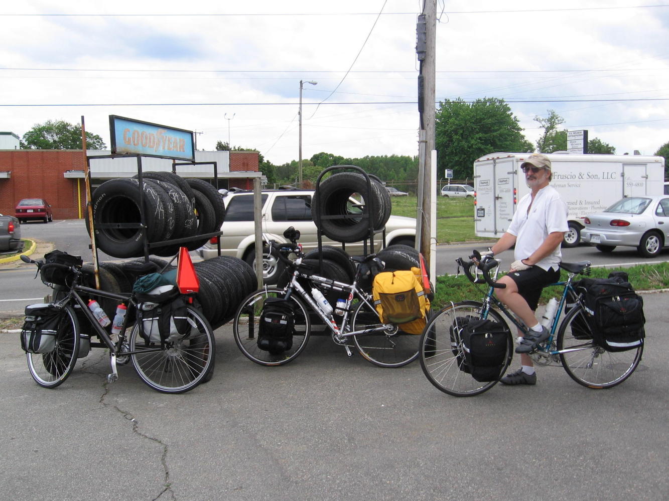 Day 2 was blessedly uneventful. I didn't fall off the picnic table, but some bug decided to bite me about 15 times on the hand that was sticking out of the sleeping bag. Most things had dried by morning, so we packed up and headed out with Brian and his beautiful custom bike with plenty of chrome bling. He helped Cristey adjust some more things and told us a few more stories as we pedaled down the road