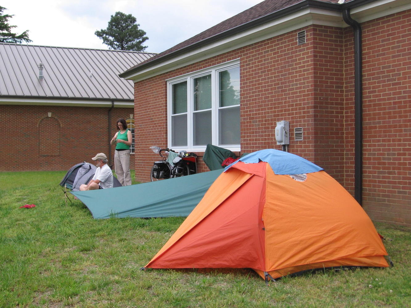 Cristey and I start setting up camp while Brian gets the grand tour with the pastor. Brian came back all excited, saying they were offering us food and showers and whatever else since they were housing the homeless people anyway and had plenty of food.