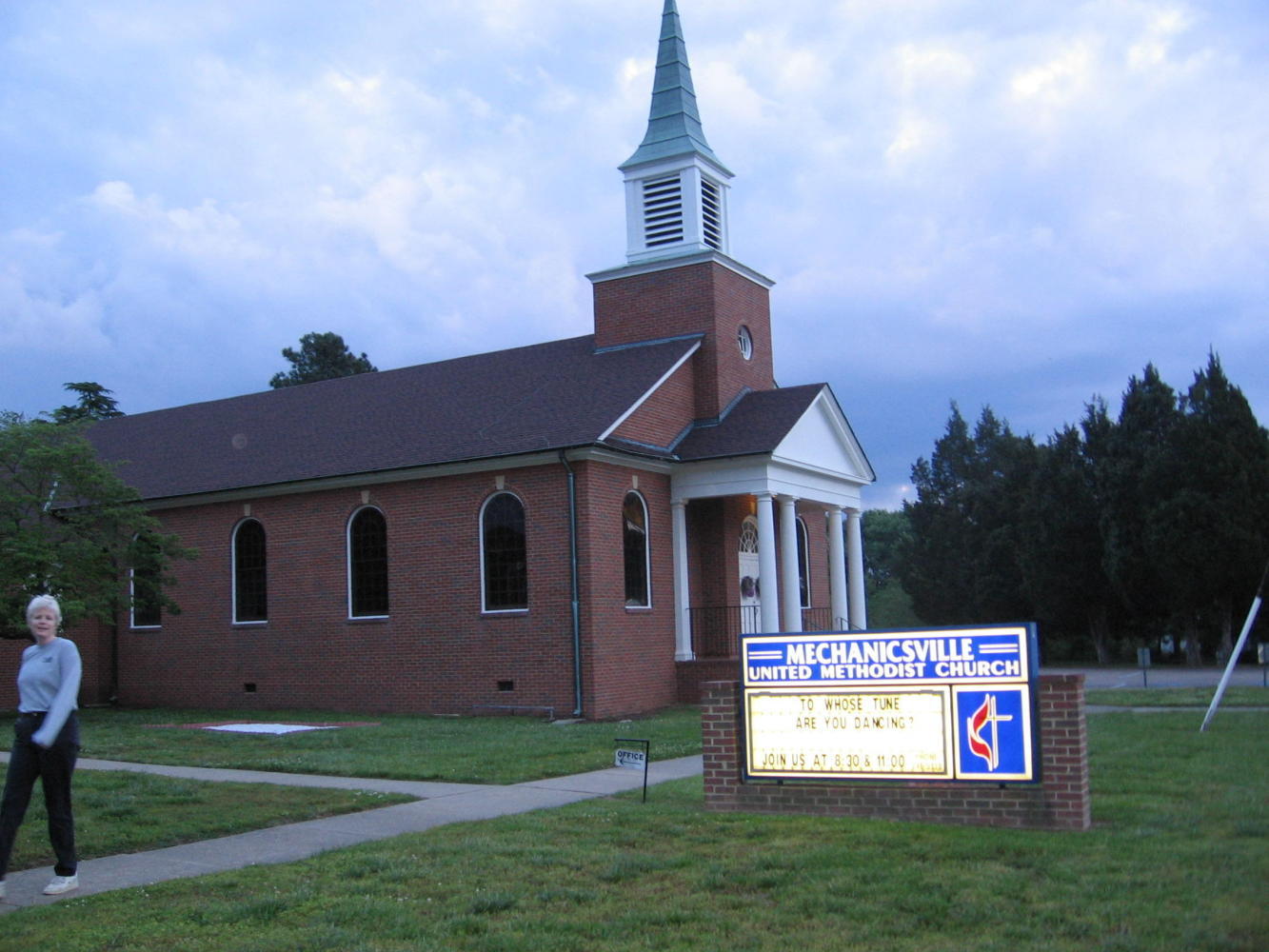 The next free camping was at Willis Church, but we got there too early to stop for the day. I was kind of dragging and might have stopped since there were few camping opportunities for WAY more miles than I wanted to do that day, but with Brian, I knew we'd figure something out. We met a few little hills, had some gatorade, sat in a couple of shade trees...the usual touring events of the day. When we got to Mechanicsville, Brian was starving, so we hit up a burrito place to fill our empty stomachs. Already, I'm eating more (and more often), so food is good. Brian said he couldn't go to a restaurant with two pretty girls in lycra and not buy, so we ended up with free dinner.