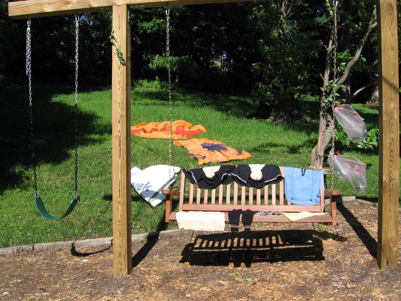 I made it over the first mountain (it wasn't nearly as bad as everyone made it out to be--just long) and decided that Elk Garden Methodist Church was going to be all the farther I made it that day. I knew I wanted to stay at Breaks and couldn't make it that far in one day, so it didn't really matter where I stopped. Plus, that gave me time to dry out the tent, do some laundry, and reorganize all my crap at the church. Amazing how the stuff in four little bags can explode into tables full of a rummage-sale looking mess.
