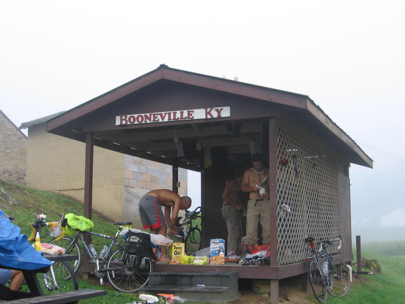 I was so hot when I got to Berea that I just had to stop for ice cream. Seems I shamed a few patrons at the ice cream store into not complaining about walking 2 blocks in the heat after they found out I'd ridden almost 60 miles in it. Today was the first day I missed my car and its air conditioning, but I'm safely at Oh Kentucky RV Park, complete with a $5 biker rate, laundry facilities and a pool.