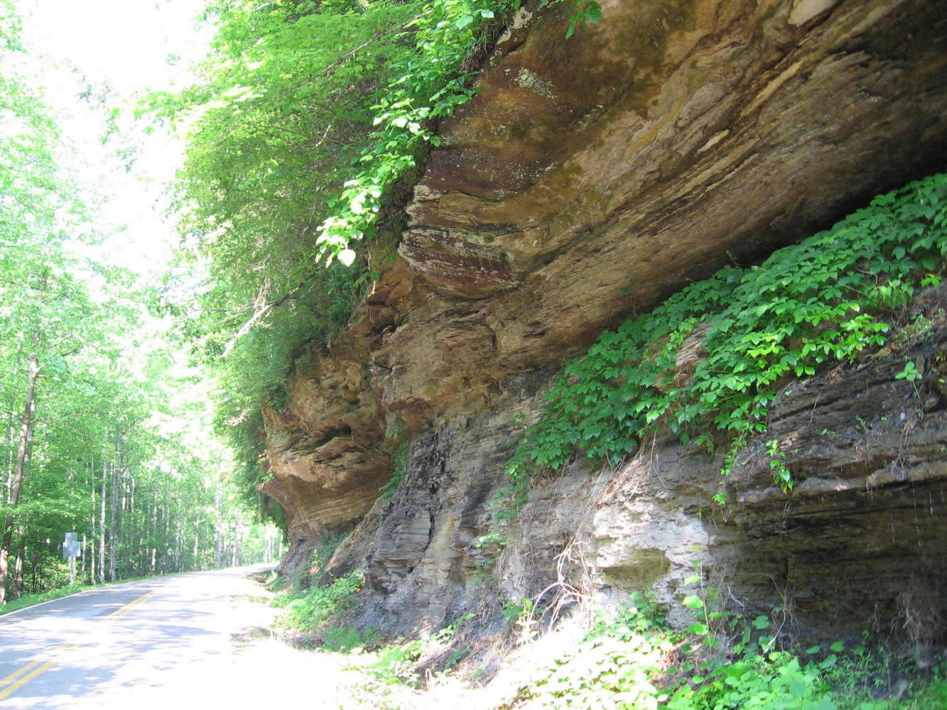 Part of today was gorgeous--beautiful cool hollows and little valleys to ride through in the morning to keep the humidity at bay, but that spit me out into rolling farmlands with roads exposed to the sun. And something like 40 miles without services, so I had to go easy on the water near the end of the day. When I got to a service stop, I bought two bottles of water, gatorade, and Pepsi and drank about half of that right there while I chatted with Shirley, a lady who'd worked at the Bighill post office since 1979 and was able to give me good local information for Berea.