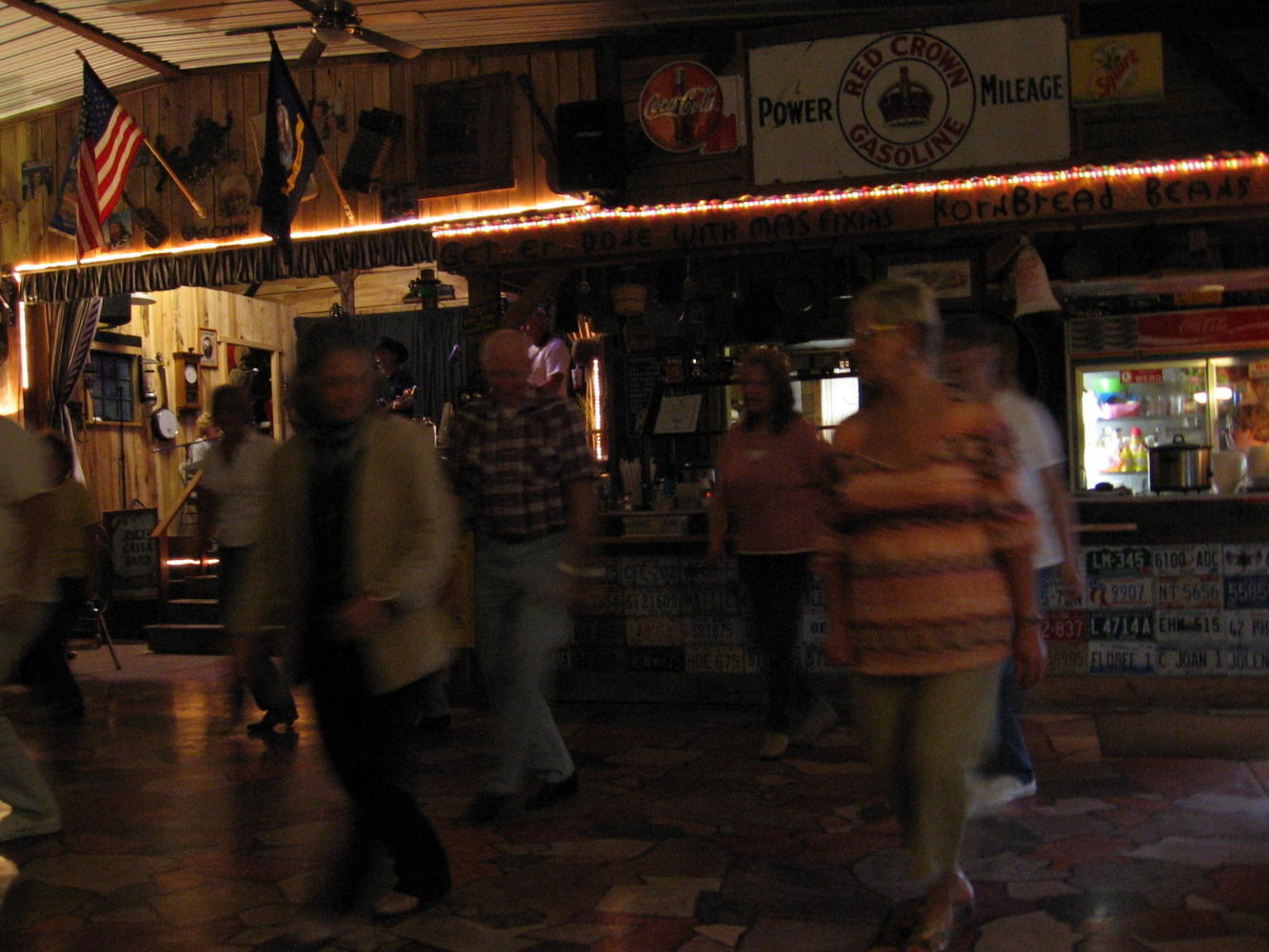 I moved the bags and bike inside (it had started raining--see, it follows me) and had one of the best showers of the trip before going back to the Barn-thing, which ends up being something like a country bar but with no alcohol. Mrs. Morris served me the best ham beans I've had and cornbread (also free) while I listened to the band and chatted a bit with some of the line-dancing old folks. But I was so tired I eventually had to call it a night and went to sleep with Elvira and Achy Breaky Heart karaoke in the background.
