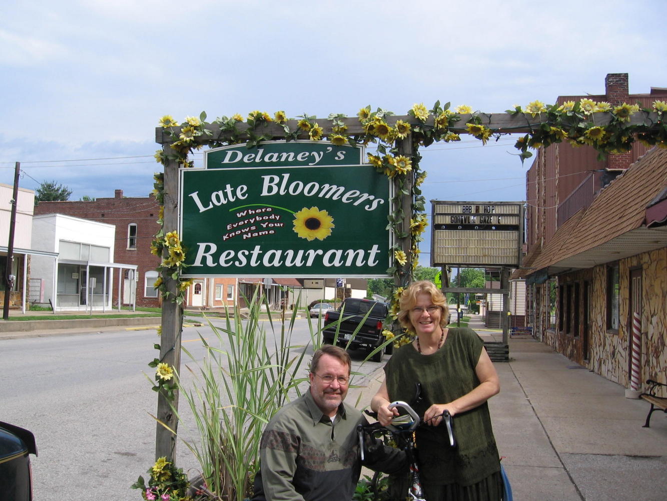 I missed a turn in Goreville and as I was checking the map and turning around a block later, some guy pulls over, jumps out of his car, and flags me down to see if I'm lost. He confirms my direction and offers me a ride to Carbondale while his wife yells out from the car for him to invite me to breakfast. They look like they're on their way to church, so I don't want to delay them, but they insist on breakfast at their favorite local restaurant. And what kind of biker would I be if I turned down free food.