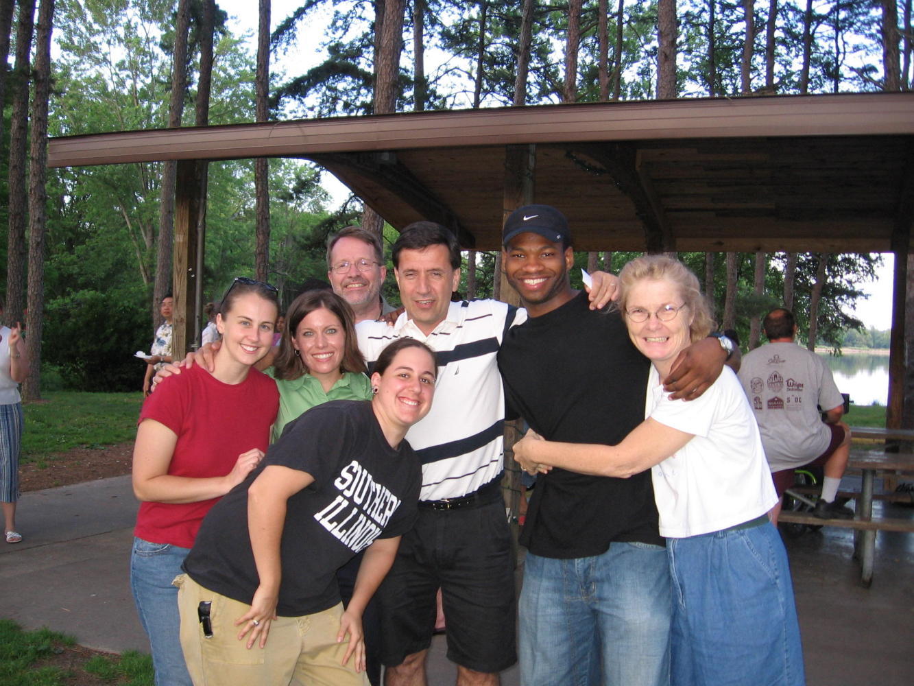 I got to Carbondale and confirmed that all three bike shops were closed on Sunday, as expected. I didn't have any major failures with the bike at this point, but I'm giving up on my Brooks saddle. It just won't break in and I can't get it comfortable in enough positions for my body (I may write more on this later for other lady bikers thinking about a Brooks). I also really needed to get caught up on my journal, so a half day off here wouldn't be a bad thing. However, the library there wanted $5/hour, so I decided to try the SIU campus instead. While in the library parking lot, though, I met Peter, and EB rider who seemed to be having a lot of fun on his trip. While we chatted, Ken and Peggy showed up and invited me to a church picnic that evening if I wanted to stay in town. So they headed home for the afternoon, Peter headed down the road, and I spent the afternoon in the library.