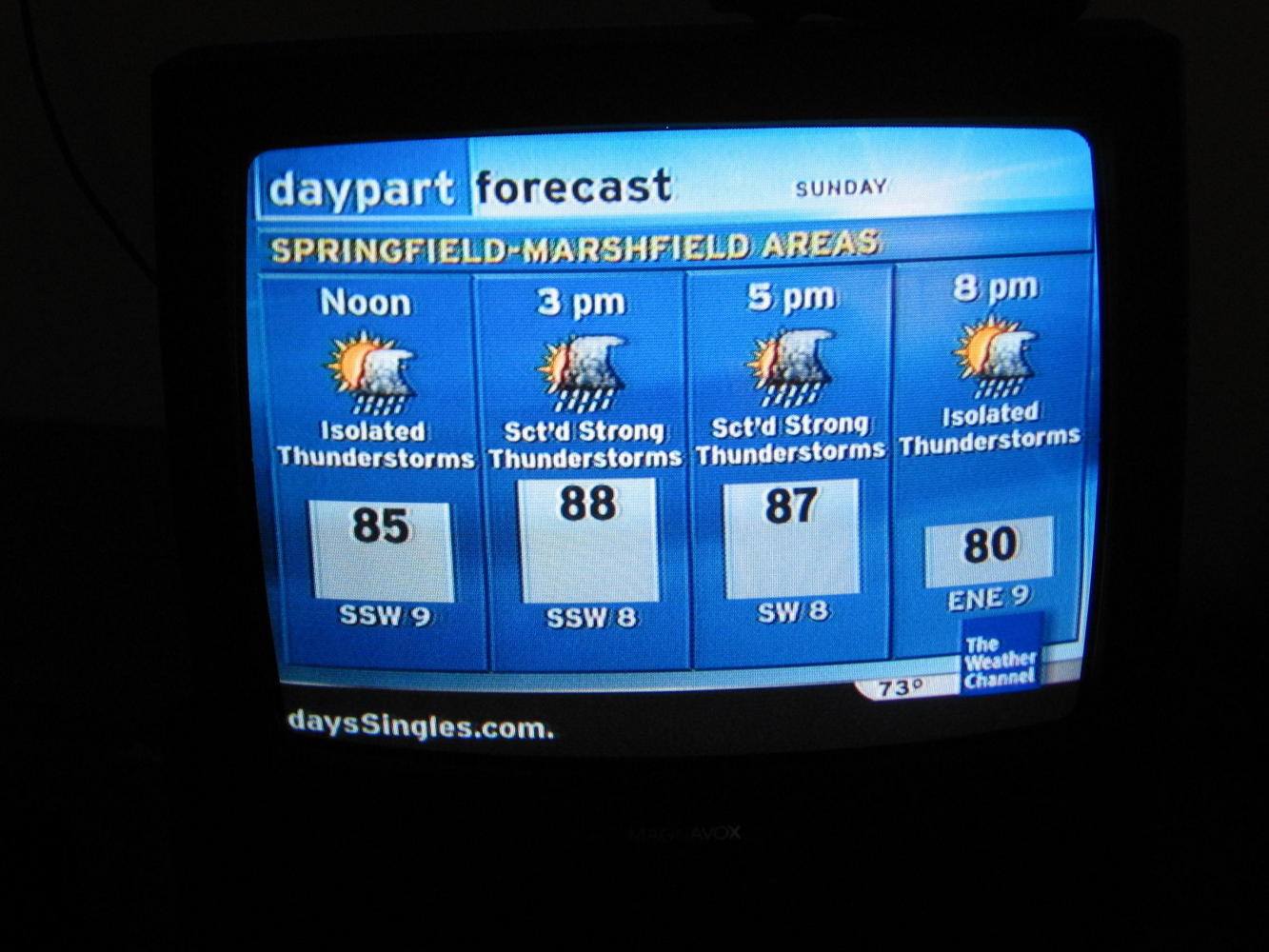 Hit the edge of Marshfield in really good time after my early departure and stopped at a Casey's for my favorite doughnut from them (alas they didn't have any breakfast pizza cooked up). I was going to call my uncle to tell him I'd have no problem hitting Fair Grove by 11 but decided to wait until I got to the other side of town just because. So not a half a mile on, I hear a dreaded 'ping!' as I'm turning a corner and being accosted by local volunteers trying to get donations for July 4th fireworks.
