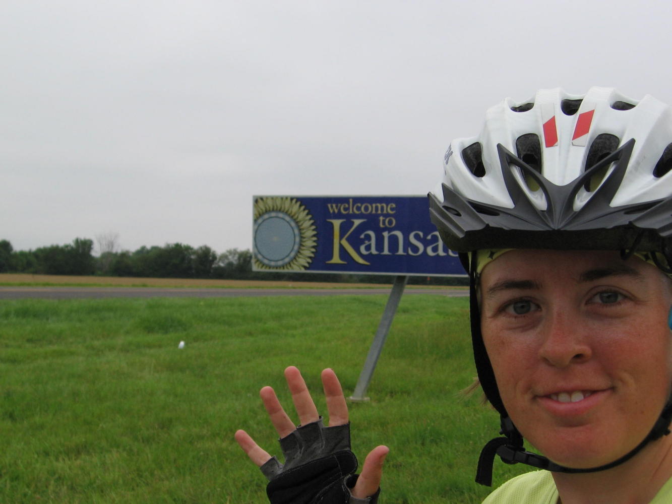 I was a little lonely, though, too. I wanted to share this border crossing with someone, wanted someone to be excited that I'd made it this far, so when I got to the 'welcome to Kansas' sign, I tried to call a couple of people. No one answered their phones, so I called the Writing Lab I work in to talk to our office manager Hsiao-Ming. She's been such a huge supporter of the trip-buying a map and tracking my route in the office, paying for a hotel night in Kentucky when I was soaking wet, and handing out my website info to friends and students. We talked for a few minutes, then I headed on the few miles to Pittsburg.