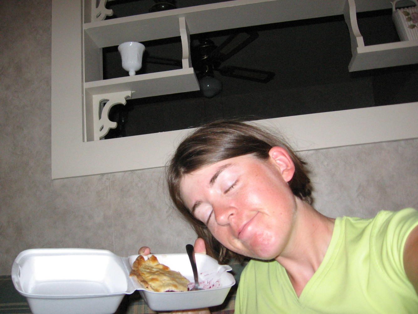 Woke up to my cell phone alarm in the Golden City hostel and rolled out of bed. I hadn't gotten to sleep very early and wasn't very excited to get up until I remembered my BlueGoose breakfast pie in the fridge. This is why I bike. So I can eat pie for breakfast (actually, it was sugar free, so it wasn't QUITE so bad for me!)