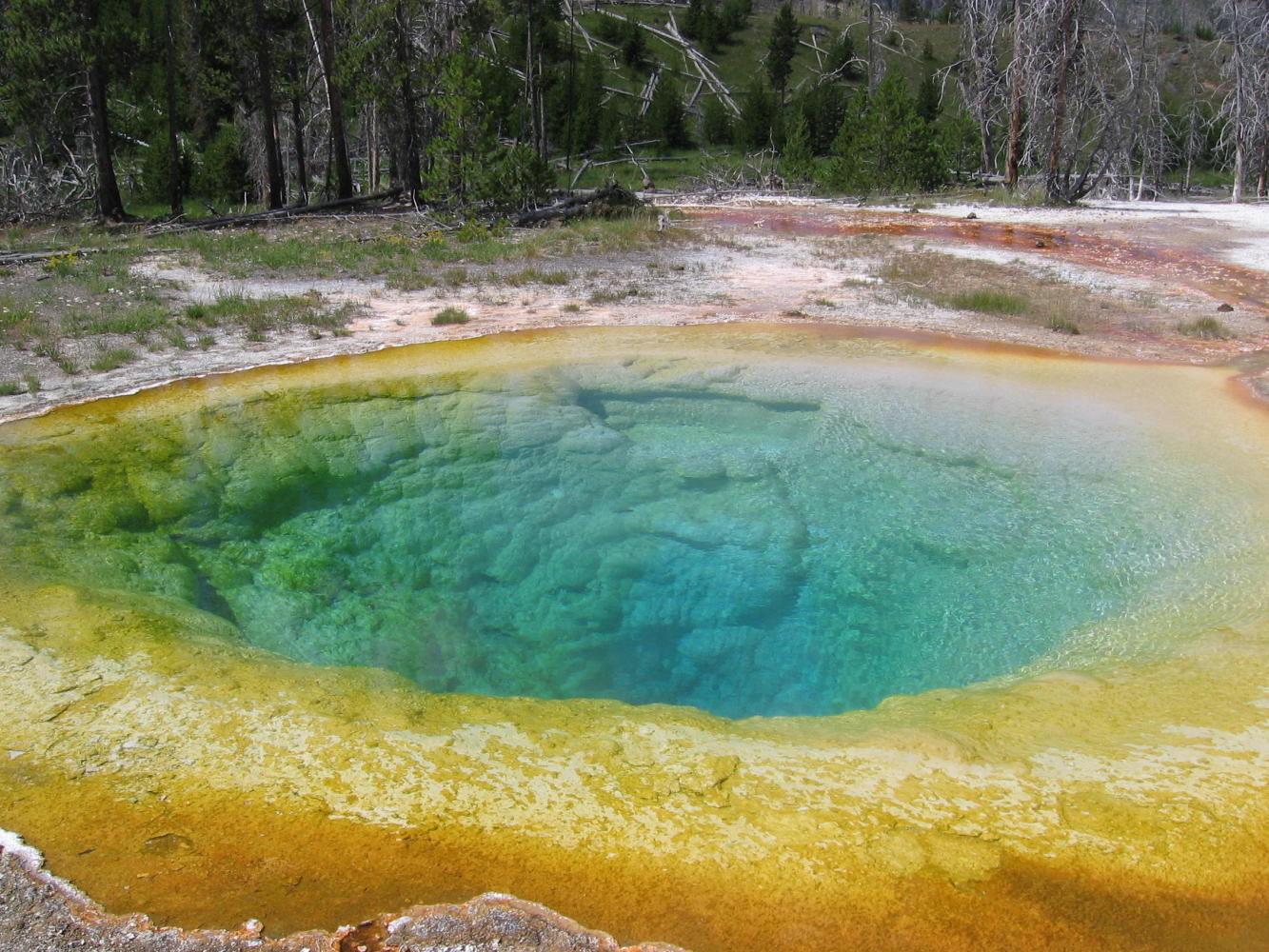 Got to Old Faithful in plenty of time for a cookie break--when the geyser was behind schedule, some people started the wave and that seemed to coax it out. Hiked the geyser basin for a few miles and got lucky enough to see Grand Geyser go off--way cooler than old faithful. It kind of spurts randomly for about 10 minutes over 100' up. Made it to Morning Glory pool and headed back to see the Old Faithful inn as I was getting more and more intollerant of tourists and their insolent children, but it wasn't so bad.
