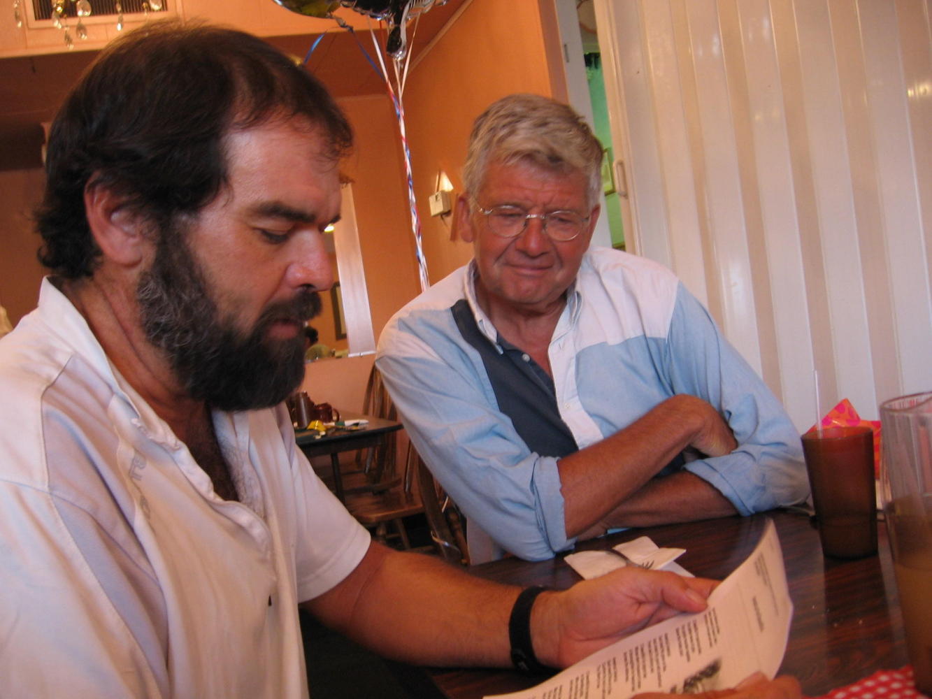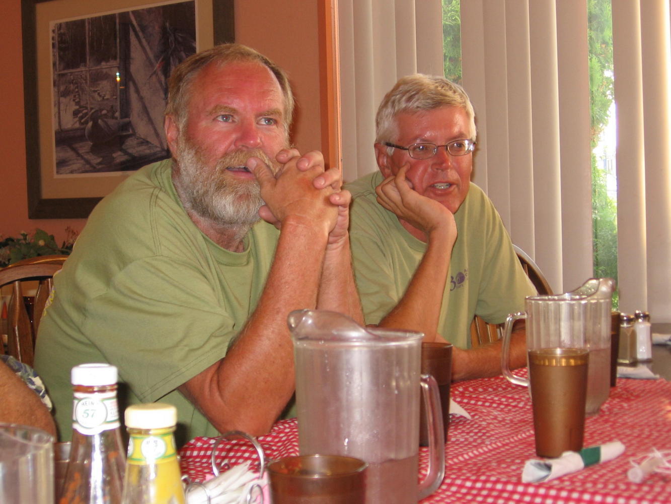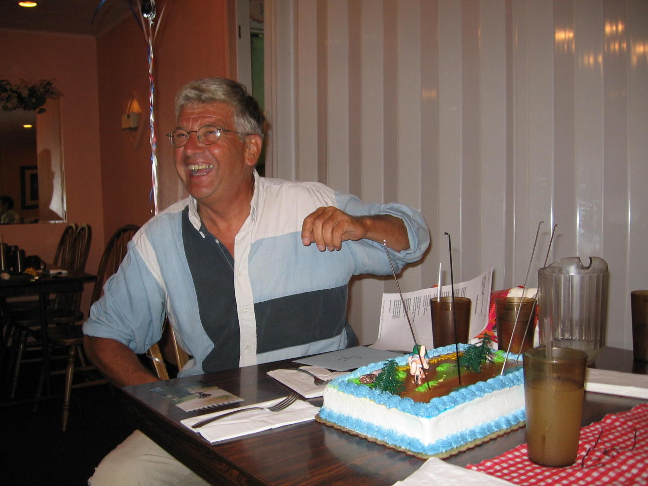 Had some mediocre Chinese food for lunch, sent over 8 pounds of stuff home, so I had to repack panniers. Threw in my laundry with Alvin's, made some more calls, and got ready for Jacques' going away party. The party was wonderful, with Rhonda the miracle worker from the hotel taking care of arrangements for dinner, cake, and gifts for him from Baker City. The group gave him a card and pictures, he made special mention of each person in a toast, and the group shared special memories.
