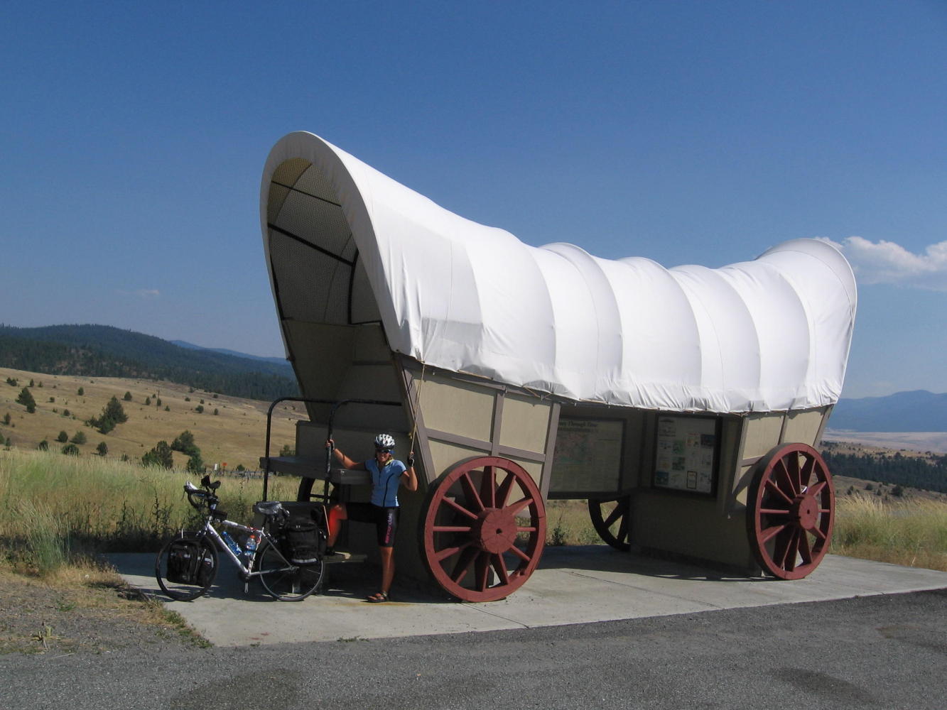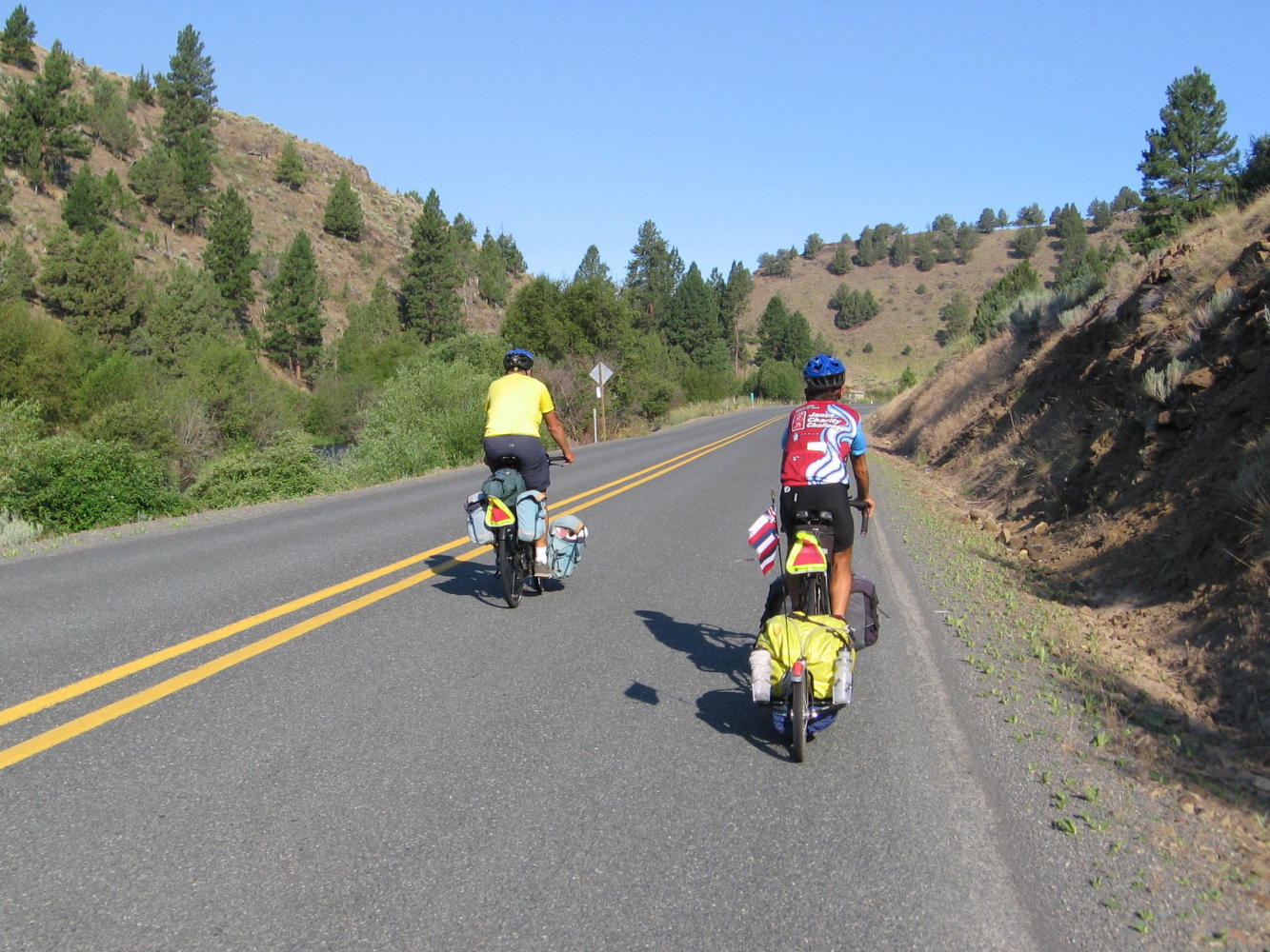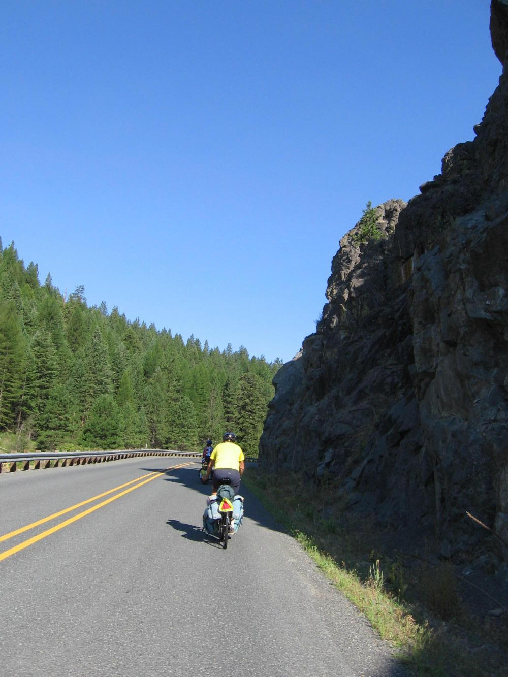 Jacques said I should go slow on the downhill side since he'd waited for me on the uphill, but I blasted on past him on the 9 miles into Prairie City. But just after I pulled out of a roadside info center, Alvin came around me. I couldn't let that happen, so I put some power on the pedals and tucked in behind him. We both would have been in trouble if he'd have gone down at that speed, but those last miles of the day were some of the funnest of the trip.