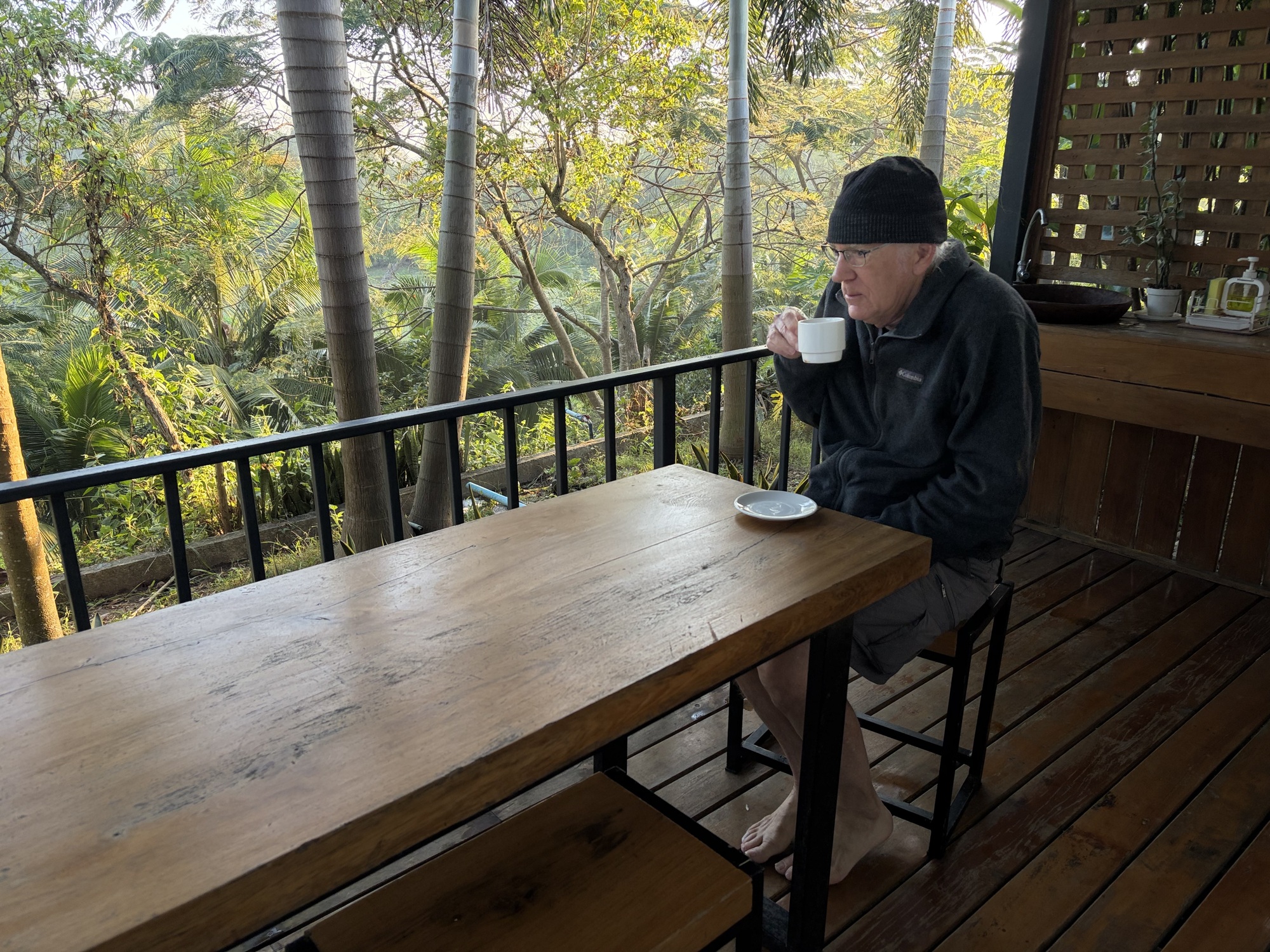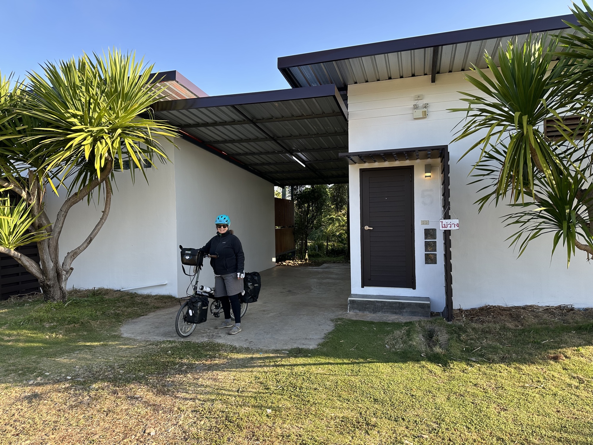 We had the most beautiful back porch complete with a sink but in the morning it was so cold (47 degrees F.) that when I tried being out there all I could think of was one of the main reasons we had come to SE Asia for the winter - warmth! Back into the brand new beautiful bungalow. This is what we have learned when we are way out in the middle of nowhere in Thailand; bungalows can be the nicest, newest and cheapest in Thailand. What a treat after riding hard all day. Or, after riding easy in a pick up truck for the first hour of the day and THEN riding hard the rest of the day. No matter how you get to one of these bungalows it's a treat.