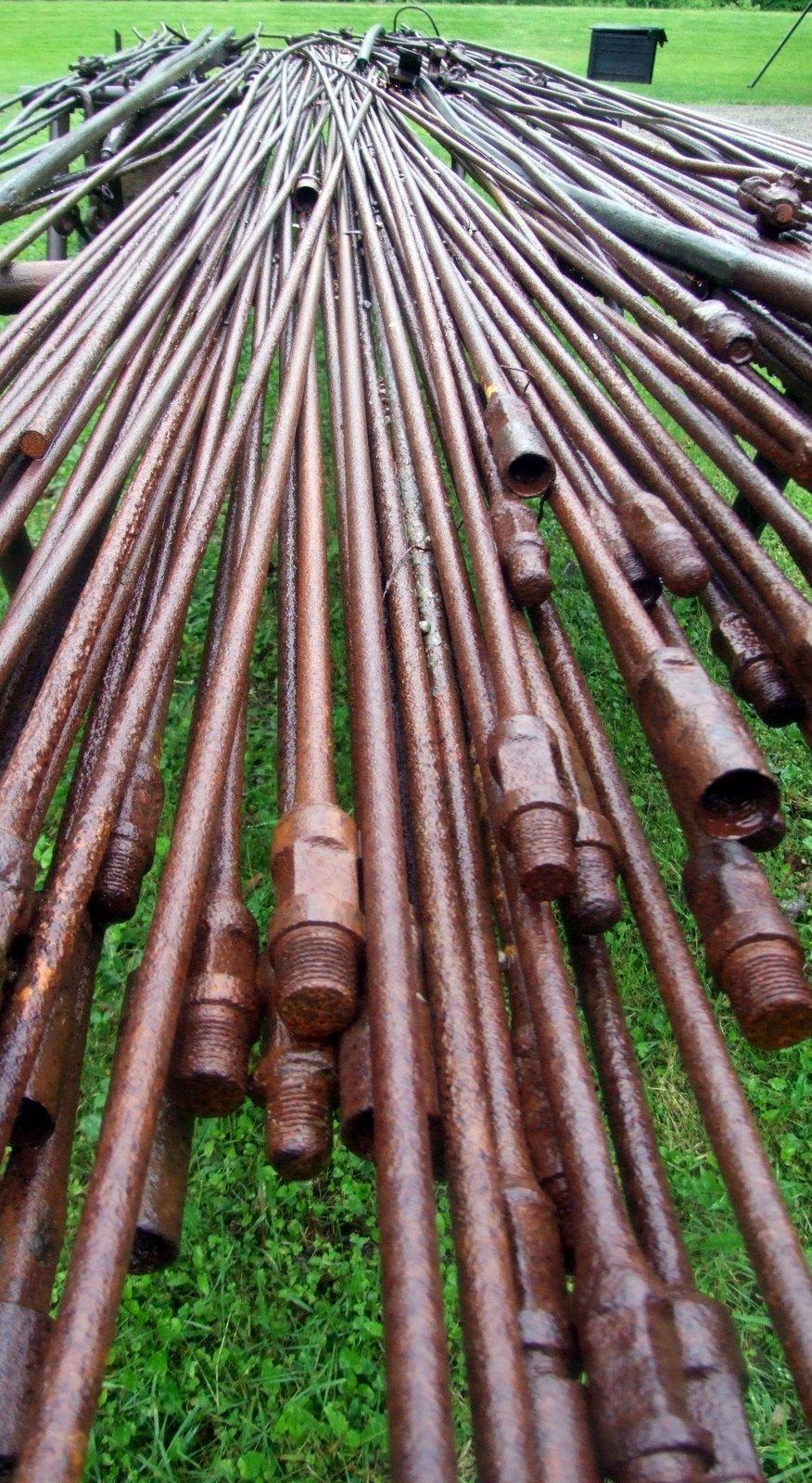 We walked the length of the horizontal pump and stood by a pipe about the diameter of the fingertips of one hand when you gather them together. A dense but flowing liquid pulsed from the pipe in time with the pump, fell into a steel barrel and then back down into the ground. Only that last part was different from what would have happened back then.
